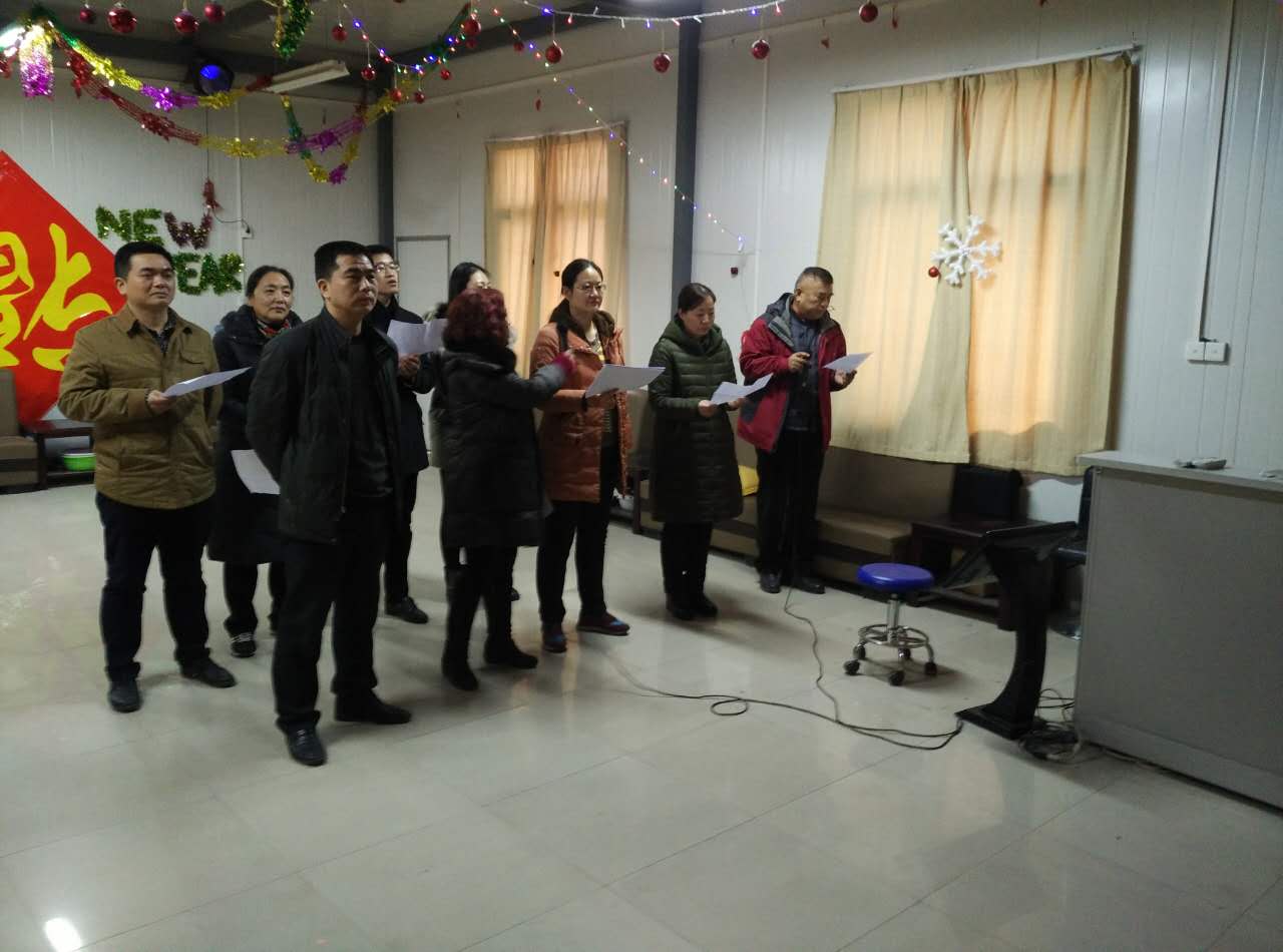 2015年12月29日,培训中心全体成员集中训练,准备迎接学校工会 组织的全校教职工迎新年合唱比赛。