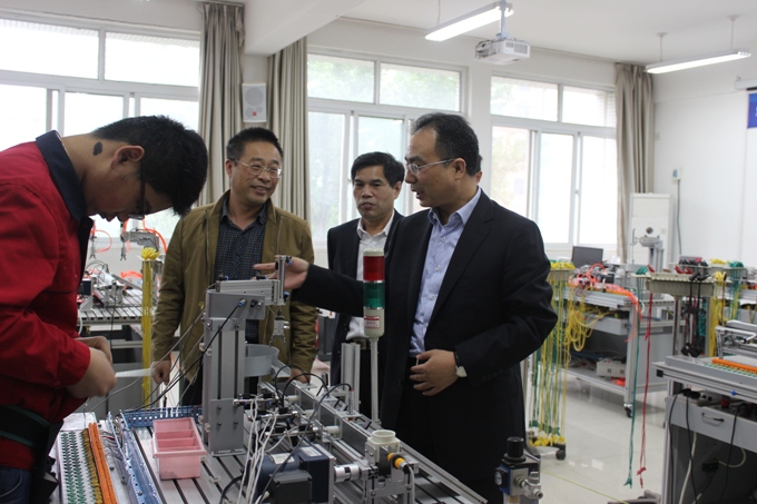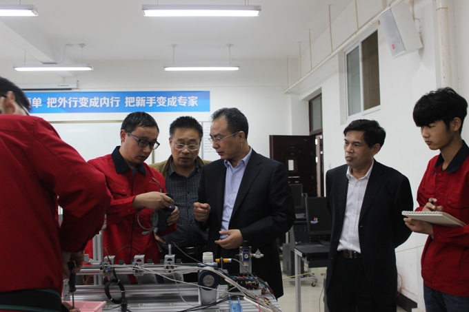 2016年4月26日上午,河南省教育厅尹洪斌副厅长在有关人员的陪同下到我校机电工程系检查指导工作。我校寇守峰校长陪同检查。