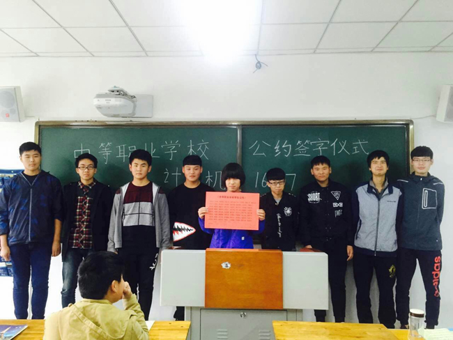 在每个班级,同学们郑重地在横幅上签下了自己的名字。他们表示,在《公约》签上名字,就等于签下一份承诺,在今后的学习生活中,一定要按照校规校纪严格要求自己,信守对学生公约的承诺,争做一名优秀中职生。