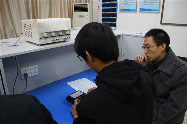 2016年11月25日上午,我校电子工程系举行2016级学生万用表操作考试。本次考试过程完全模拟技能大赛流程,学生们在备考区等待、待考区检录、考试工位随机安排。考场上,学生们一丝不苟的完成每一项操作动作,评委们认真打分。本次考试是对学生学习成果的测评,同时也是对本学期16级《电工产品制作(万用表)》课程教学效果的检验。