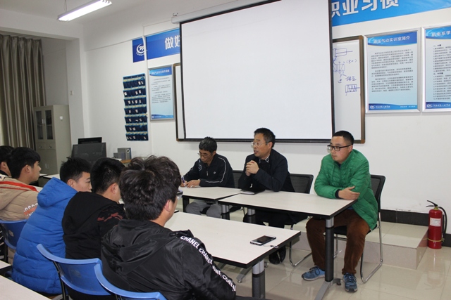 会上首先由徐辉主任介绍了学校机电技术应用专业、汽车运用与维修专业的课程特点,并提出了对广大同学的要求期望;各班代表针对各班情况提出了针对性的问题和建议,如学生提出想要增加实训时间的问题,教师进行了解释讲解,如有些学生提出了教室设备等问题,教师进行了记录。会议在热烈的氛围中进行了两个多小时。