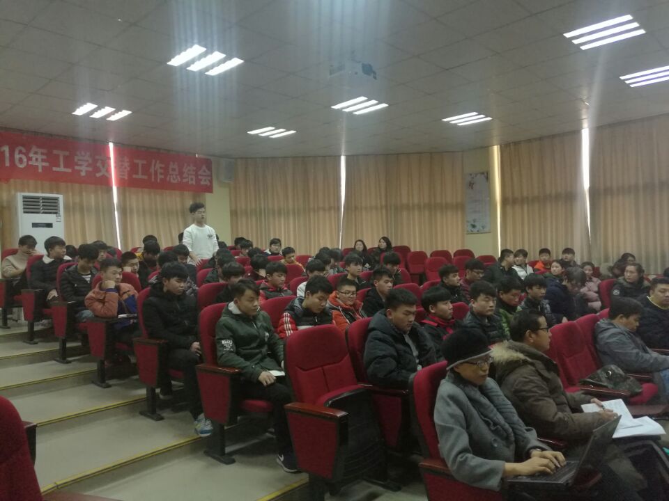2016年11月29日下午14:40,河南信息工程学校15级参加富士康科技集团工学交替的学生总结大会隆重举行。宋廷楷副校长、招生就业处李处长、党政办乔主任、教务处薛处长、电子工程系史主任、各位驻厂老师、各班级班主任及招生就业处相关通知参加了本次大会。总结会由招生就业处李处长主持。
