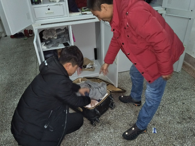 2016年11月30日晚自习,学生处(团委)组织楼层长对c区和d区寝室进行了突击安全检查,并再次强调学校教室和寝室属集体公共区域,严禁携带、存放易燃易爆和其他影响公共安全的物品;学生处(团委)也会加大对此类物品的检查,班主任老师要加强教育宣传,结合相关案例让学生真正意识到携带、存放违禁物品的危害,共同创建文明、和谐、安全的美好校园。