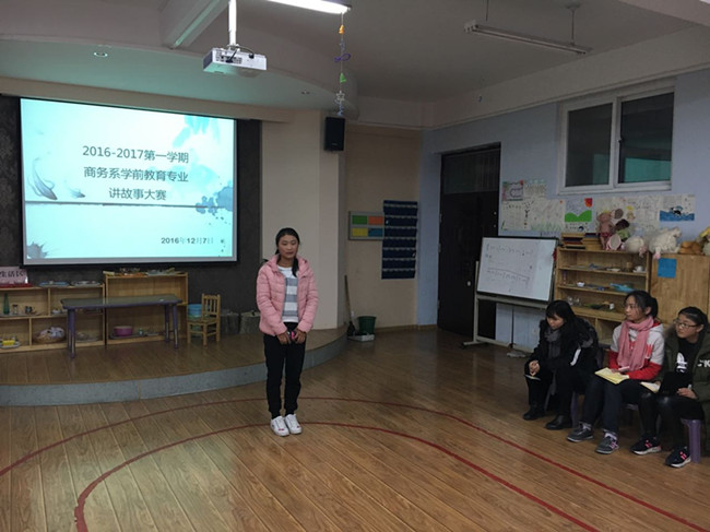 讲故事是幼儿园教师基本的专业技能之一。为提高我系学前教育专业的学生对语言的感受能力和表达能力,促进她们在专业道路上快速成长,2016年12月7日下午,商务系学前教育专业在实训楼502教室举办讲故事的第二课堂活动。