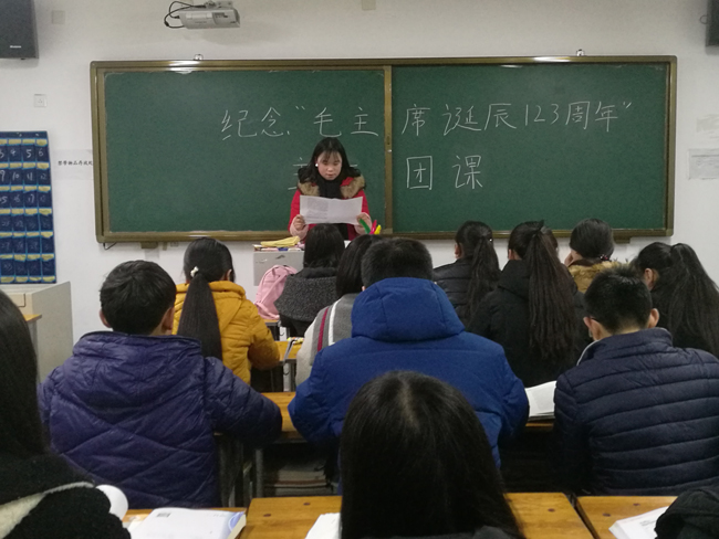 2016年12月26日,是伟大领袖毛泽东主席诞辰123周年纪念日。12月27日下午团课,学生处(团委)开展活动纪念伟大领袖毛主席诞辰123周年,全体学生以班级为单位学习毛主席自秋收起义至改革开放进程中革命、改革以及在中华民族伟大复兴之路上的壮志豪情和实践,由班主任负责组织讲解。