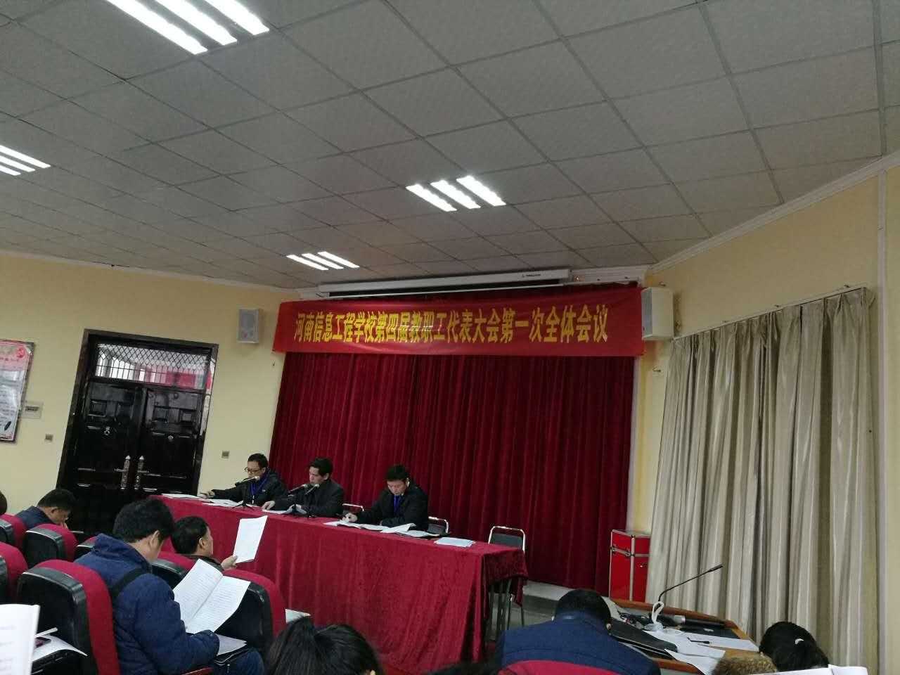 2017年1月6日下午和7日全天,培训中心6名职工代表,准时到学校八角楼道德讲堂,参加了河南信息工程学校第四届教职工代表大会第一次全体会议。