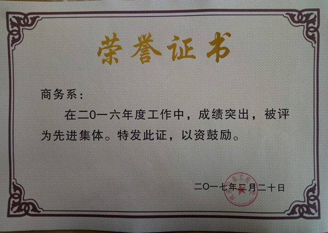 日前,从校办传来好消息,我系获2016年度先进集体荣誉称号。