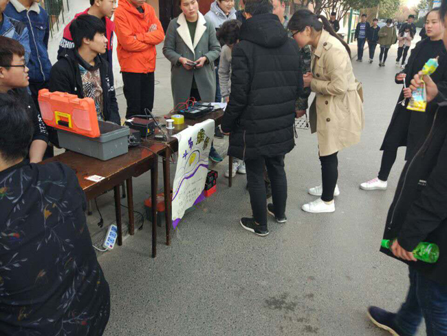维修现场人潮涌动,同学们前来观看并咨询各种各样的问题。本次维修活动共收到两部手机、三个耳机、一只去球机和一个吹风机,其中修好了两个耳机、一台去球机和一台电脑。