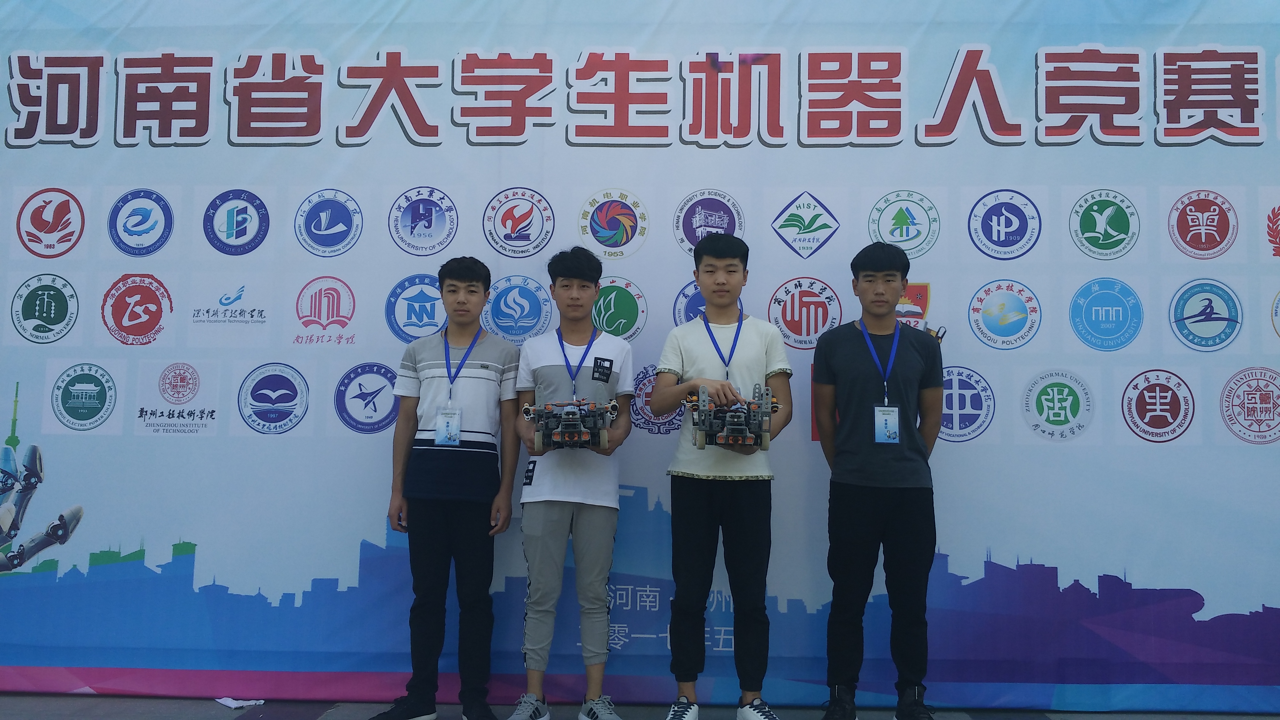2017年5月13日-14日,2017年河南省大学生机器人比赛在郑州轻工业学院举行,来自全省的十多所院校的几十只队伍参与了比赛。我校电子工程系精挑细选优秀学生,组成两支队伍参加了比武擂台项目无差别标准组1vs1比赛。