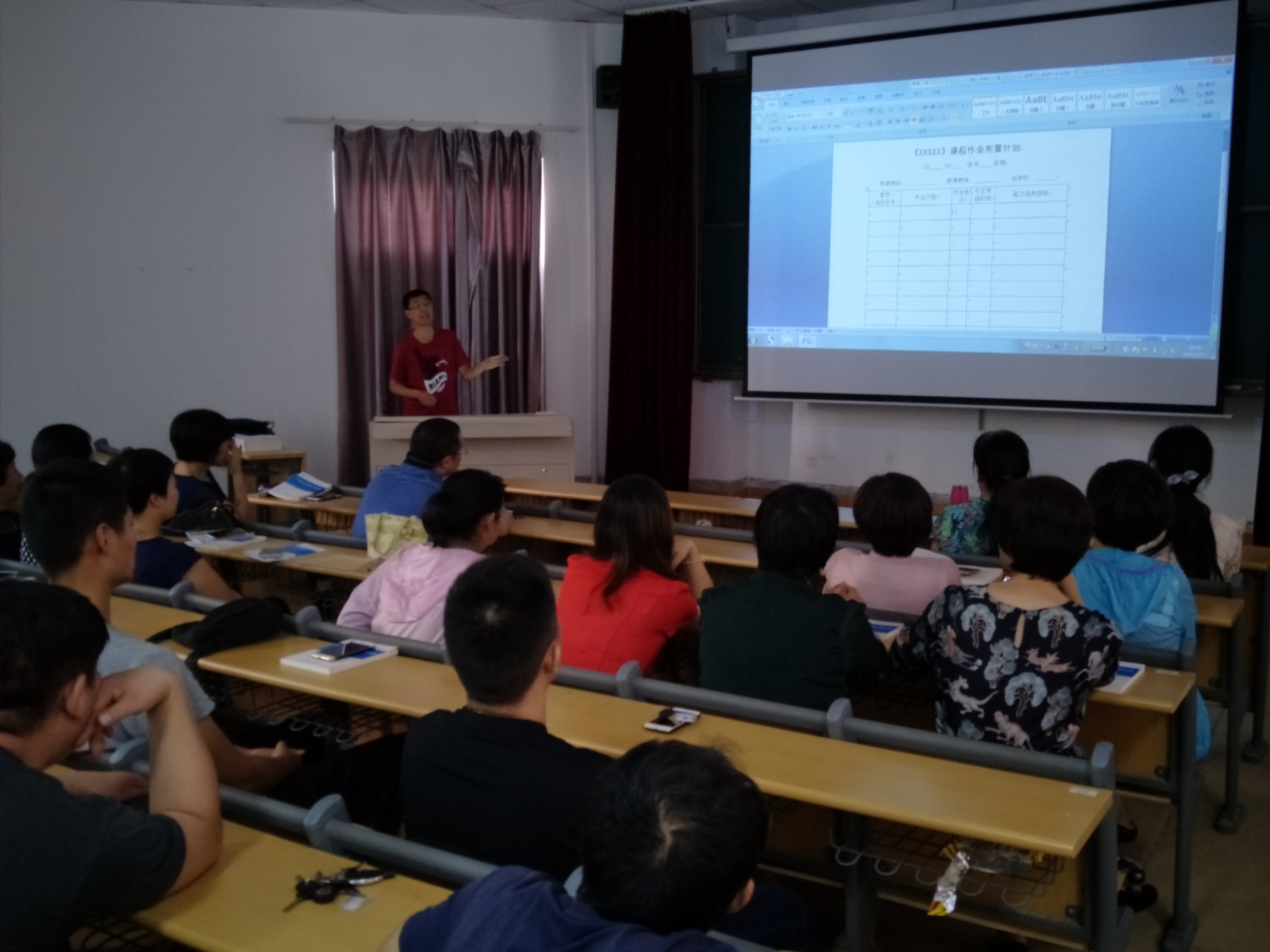 2017年9月12日下午,基础部在八角楼大屏教室4召开了本学期第二次全体会议。会议重点向全体任课教师传达了本学期《教学设计》和相关计划(授课计划、作业计划、教研计划、第二课堂活动计划)的撰写、上交、检查、考核评比要求;同时,开学之初再次强调即将在11月份举行的省中华传统文化大赛的学生辅导等赛项筹备工作的重要性;最后,会议还对每周一次的各教研室教研活动提出了新的具体要求,并对开学一周来的教学秩序检查情况进行了通报。