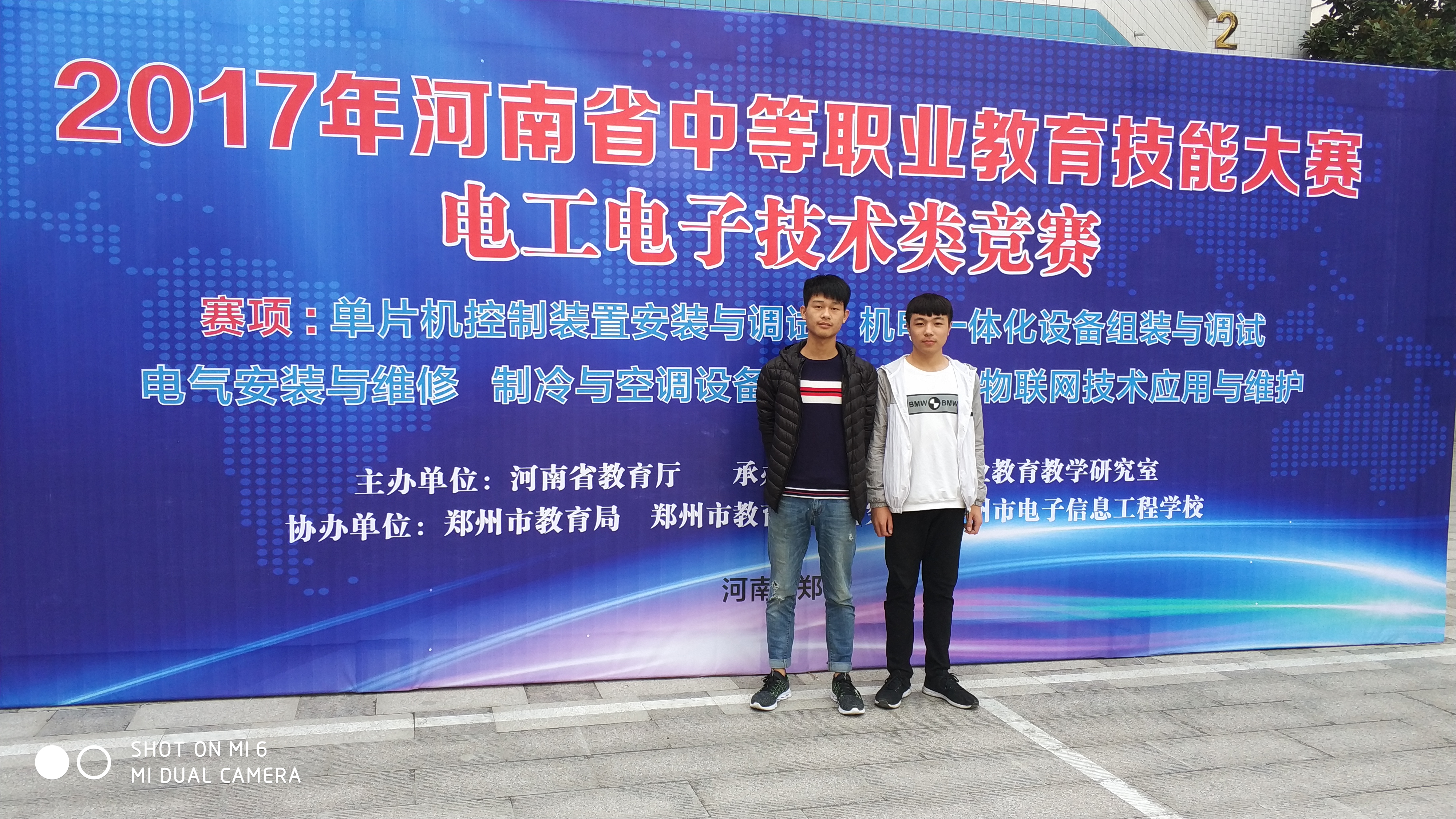 10月19日上午,2017年河南省职业院校技能大赛中职组单片机控制装置安装与调试赛项在郑州市电子信息工程学校举办,我校电子工程系两名学生陈黎明、郑仑表现优异,分别获得本次比赛一等奖的好成绩。