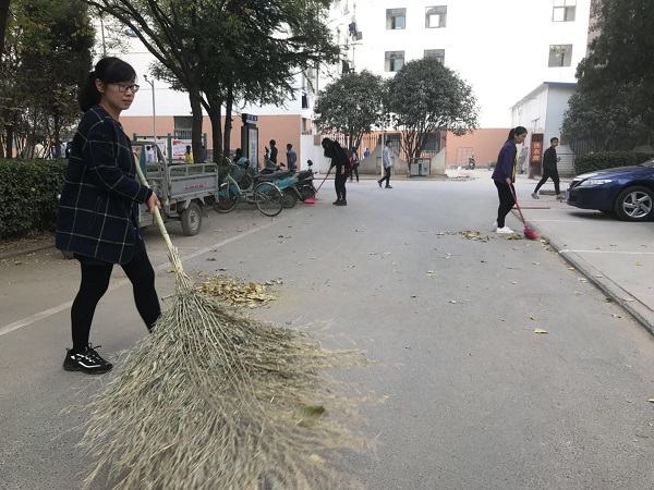 11月8日下午四点半,我系教师在教学楼前的卫生划片区域集合,各位老师在领完打扫工具后,开始对划片区域的枯枝落叶、塑料包装、等垃圾进行了拉网式的清理。