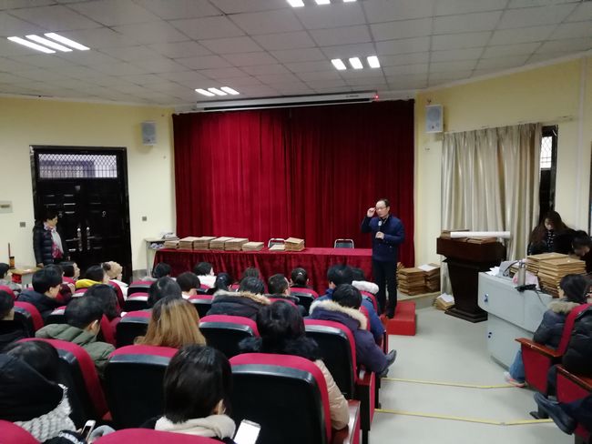 2018年1月13日上午8:00,本学期期末考试动员在道德讲堂召开,参会人员为全体监考教师及工作人员,会议由薛东亮副校长主持召开。