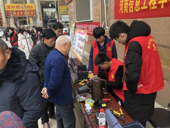 为了弘扬雷锋精神,积极践行社会主义核心价值观,2018年3月6日我校团委联合电子工程系,由团委书记冀红海、电子工程系陈宏伟老师带领我校学雷锋志愿服务队,深入到航海东路映月社区开展义务家电维修活动。