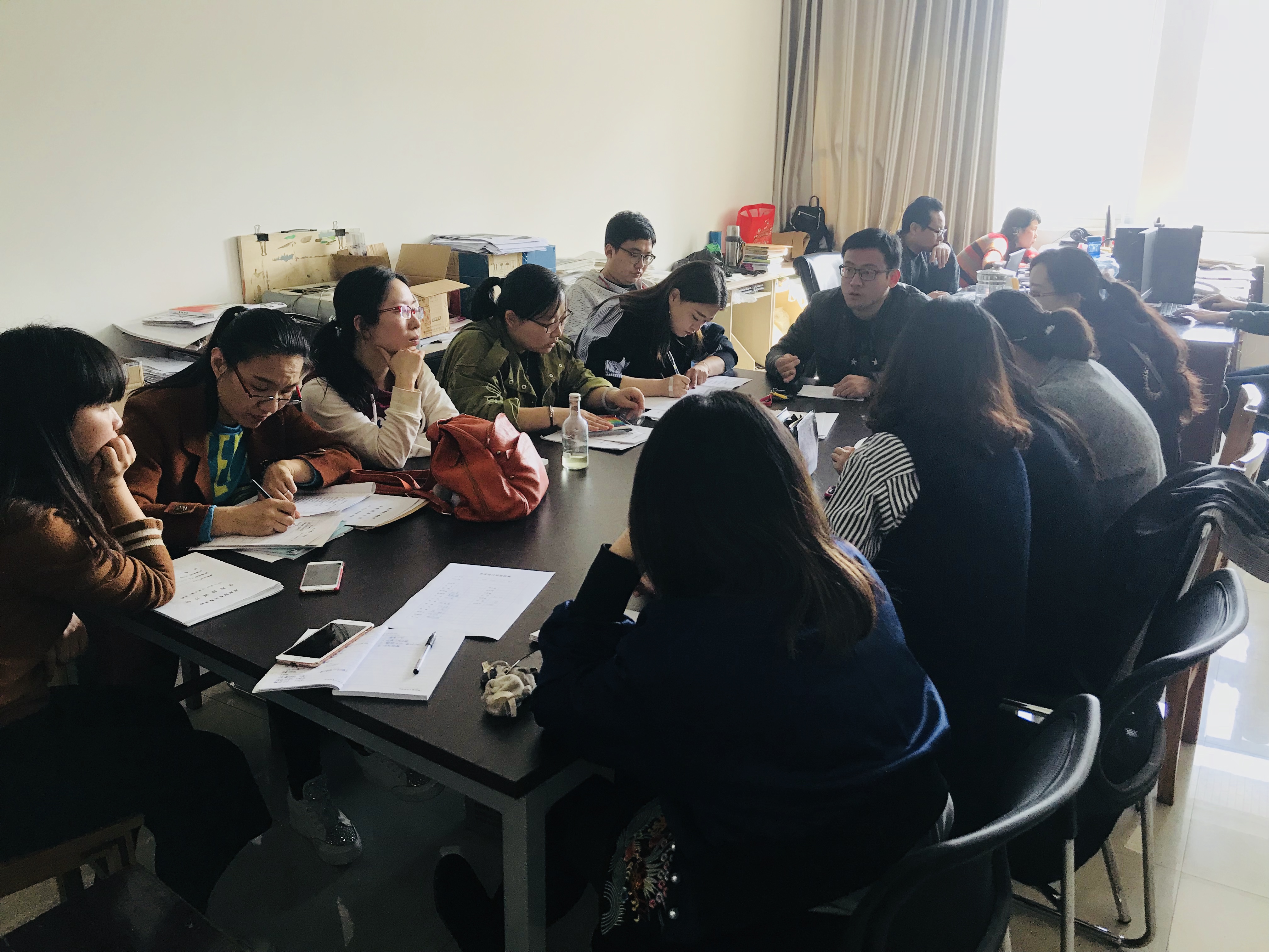 2018年3月13日下午15:00艺术设计系全体教职工在实训楼516办公室召开教学工作会并开展教研组的教研活动,会议由马飞副主任主持。