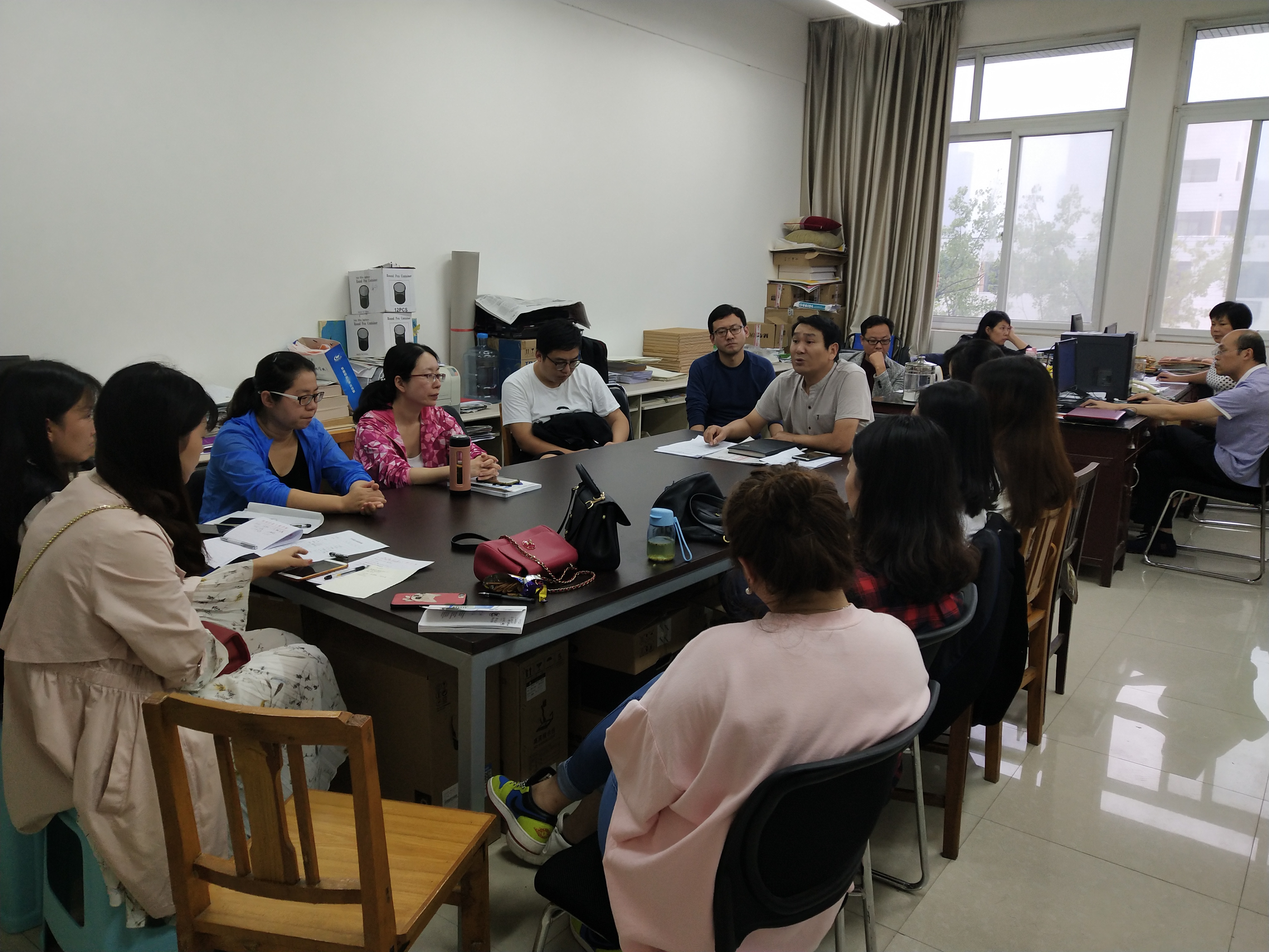 2018年9月18日星期二下午16:30,艺术设计系全体教职工在实训楼516办公室召开系部教研会议,会议由韩志孝主任主持。