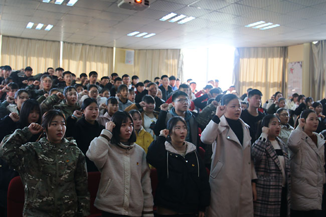 为了深入贯彻习近平总书记“7.2”重要讲话和中国共产主义青年团第十八次全国代表大会精神,2018年12月18日下午,学生处(团委)在学校道德讲堂隆重举行了入团宣誓仪式。参加仪式的有副校长宋廷楷同志、学生处(团委)中层干部及130名新团员等。宣誓仪式由屈化冰副处长主持。
