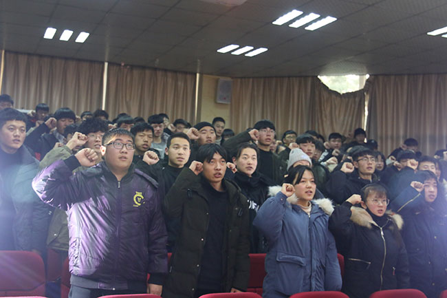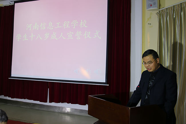 十八岁成人仪式在庄严的国歌声中拉开帷幕,首先由团委冀红海书记带领同学们学习习近平总书记在党的十九大报告中对青年的寄语,并希望大家牢记习近平总书记的谆谆教诲,勇当实现中华民族伟大复兴的生力军,奏响新时代的青春之歌。学生处(团委)张凯处长致辞,张处长向跨入成人行列的青年朋友致以热烈的祝贺,同时作为师长,张处长向同学们提出三点要求,一是一要坚定理想信念,努力扣好人生的第一粒扣子。二要牢记事业靠本领成就,不断增长能力才干。三是牢记青春是用来奋斗的,要学会感恩,敢于担当。家长代表、这个特别的仪式上表达了他们对孩子们的希望和祝福。为了表达感恩之情,学生代表父母和老师献花并鞠躬行感恩礼。全体同学面向国旗,举起右手,一起庄严宣誓。
