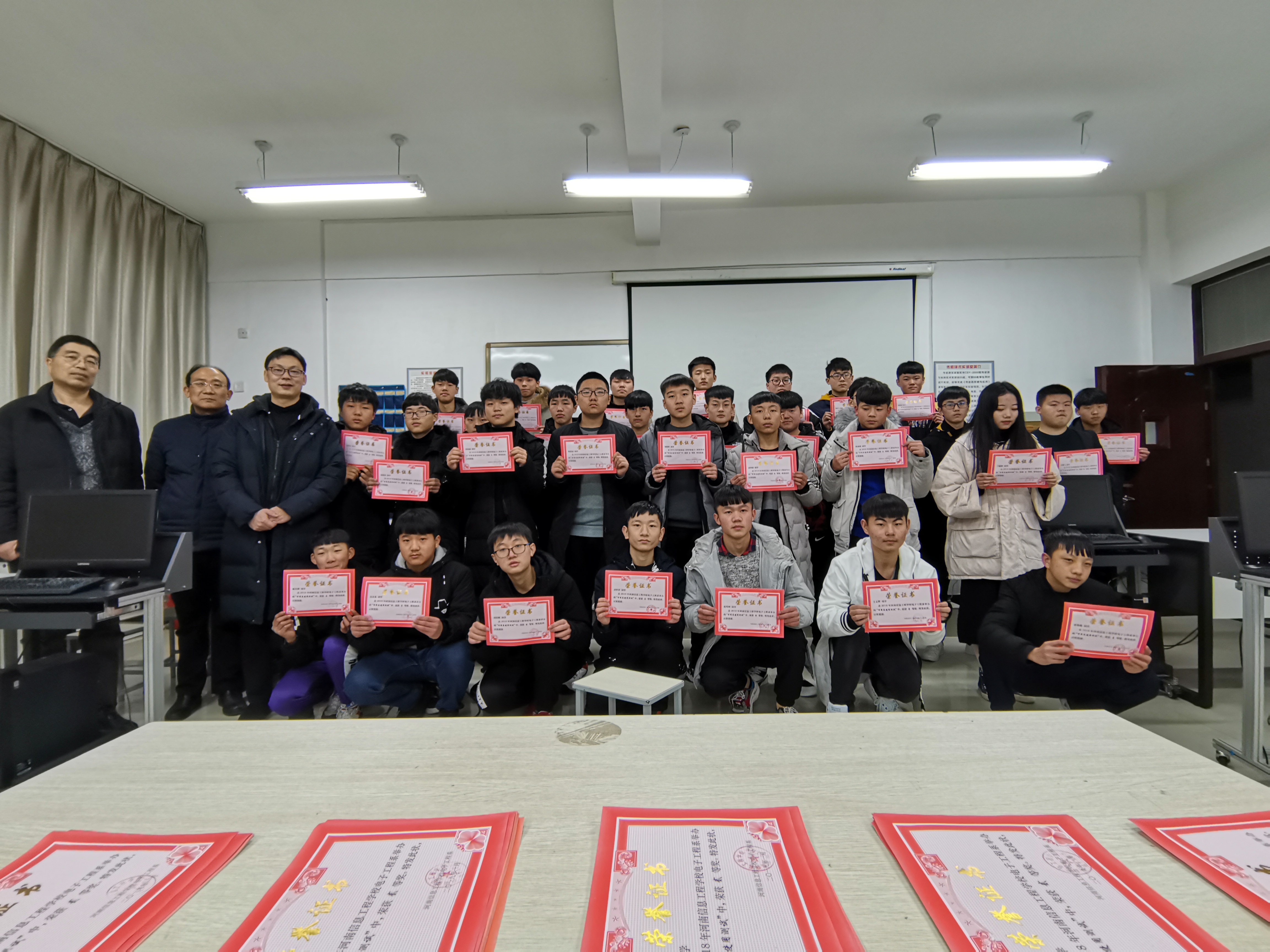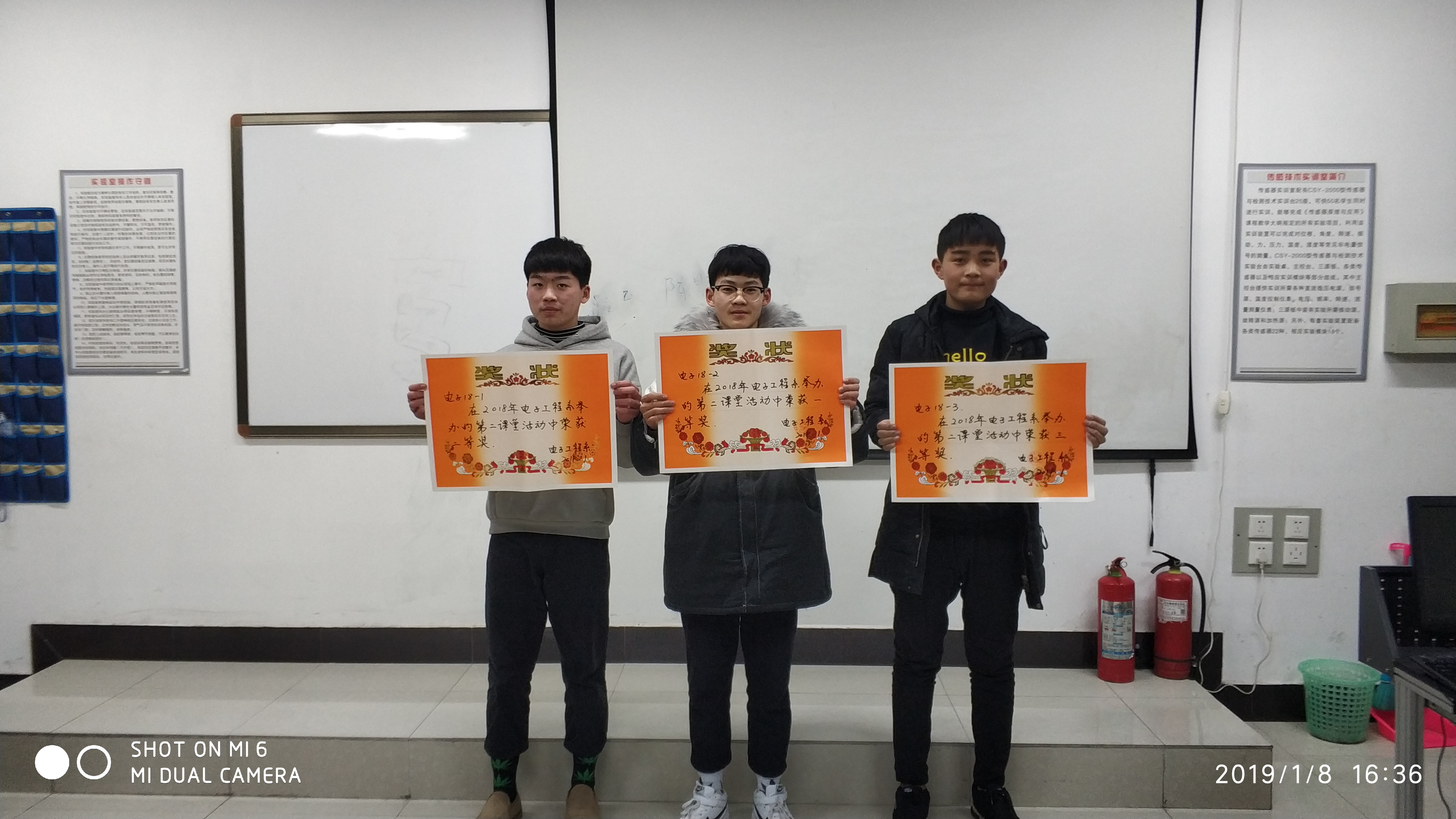 2019年1月8日 我校电子工程系第二课堂活动颁奖仪式在实训楼304举行,教研组长、18级学生代表参加了本次仪式。仪式分别为两个部分:首先向第二课堂活动表现突出的班级颁发团体奖,随后向万用表使用测试中表现优异学生颁发奖状。