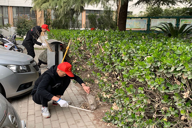 2019年3月5日-14日,我校组织250余名志愿者开展了以“传承雷锋精神 共创和谐校园”为主题的义务劳动,对校园树林、绿化带、垃圾桶等进行清洁。