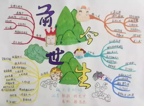 所谓“图读法”就是我们常说的画“思维导图”。思维导图是一种将放射性思考具体化的方法,运用思维导图图文并茂的技巧,可以充分发挥左右脑的机能,提高学习效率。下面是不同人阅读《西游记》所做的思维导图,从中可以看出每个人的阅读与思考重点。