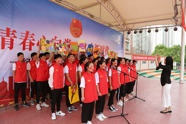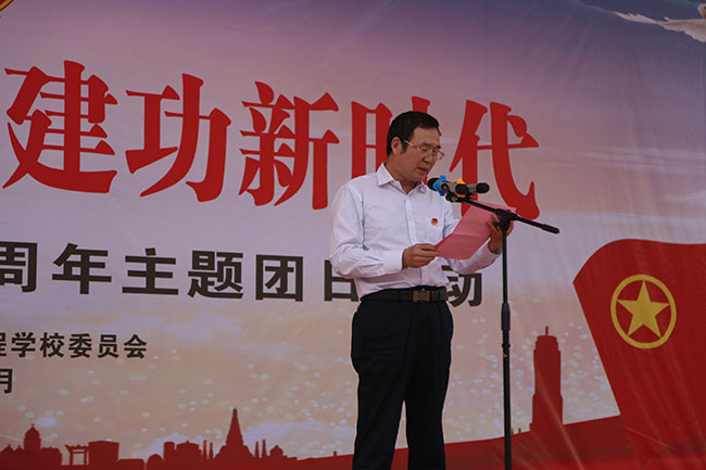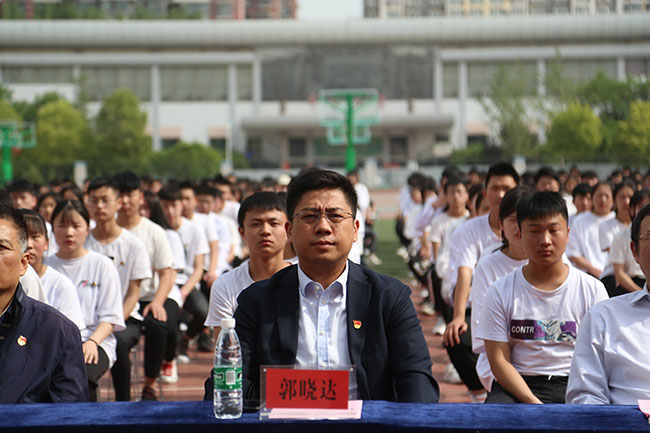 为了纪念五四运动100周年、迎接中华人民共和国成立70周年,传承五四精神,引导团员青年爱党、爱国、爱人民,使团员青年在庄严肃穆的仪式中接受“沉浸式”精神洗礼,扩大共青团在青年团员中的影响力,2019年5月15日9:00,校团委在学校运动场隆重举行河南信息工程学校“青春心向党 建功新时代”纪念五四运动100周年主题团日活动。共青团河南省直属机关委员会书记郭晓达,河南信息工程学校校长聂子明,副校长宋廷楷,省直院校理事会会长、河南信息统计职业学院团委书记张国峰,省直院校理事会副会长、河南警察学院团委副书记曾伟,河南省工艺美术学校团委书记李正,河南省民族中等专业学校团委书记方志广,我校学生处(团委)处长张凯、团委书记冀红海以及1000余团员出席活动。