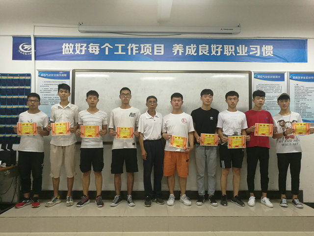 2019年5月7日至6月4日,机电工程系举行了《维修电工》、《CAD成图技术》、《汽车二级维护》三项全员化竞赛和《汽车知识竞答》比赛。本次竞赛经过系部老师精心组织、培训、预选,选拔出126名学生参加决赛。经过一轮又一轮的激烈的角逐,最终评选出一等奖13名、二等奖18名、三等奖28名。为表彰获奖选手,以赛促教、赛教融合,弘扬劳动光荣、技能宝贵、创造伟大的时代风尚,6月12日下午,机电工程系在实训楼四楼举办获奖学生的颁奖活动。
