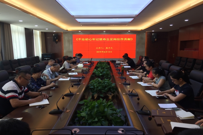 为深入学习贯彻习近平新时代中国特色社会主义思想和党的十九大精神,庆祝建党98周年,教育引导全校党员干部“不忘初心、牢记使命”,6月13日下午,在大会议室校党委委员、副校长盛兴文为党员干部上了一堂以《不忘初心筑梦、牢记使命向前、立足岗位奉献》为题的专题党课。