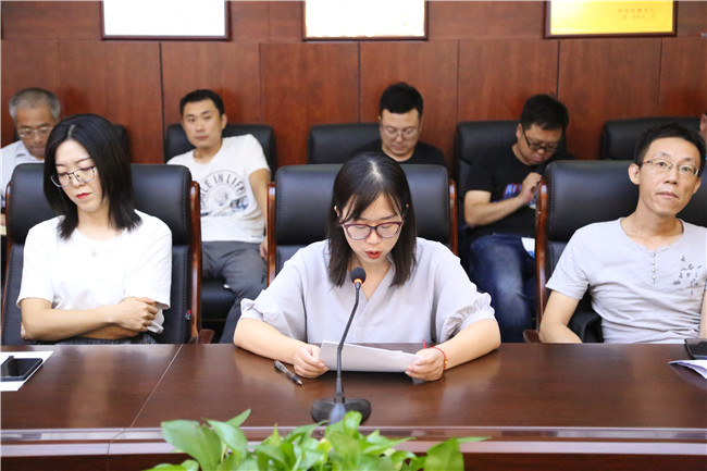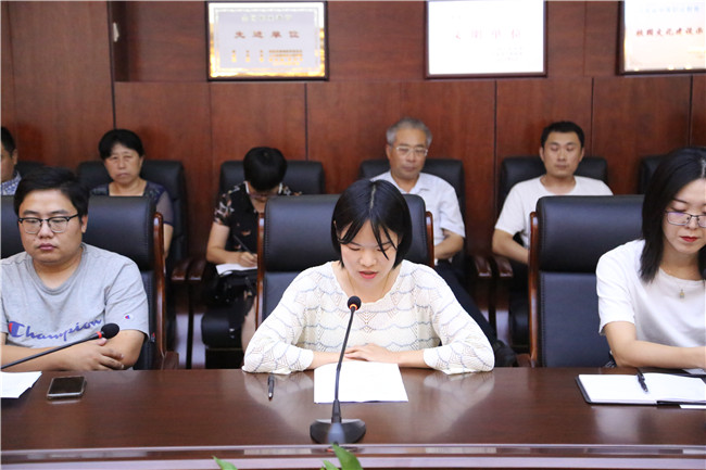 机关党支部王晓辉发言,感谢时代赋予自己的教师责任,感谢学校各级领导的悉心关怀和正确指引,在今后的工作中将继续发挥自身优势,以饱满的热情和踏实的作风投入到工作中去,“做党和人民满意的人民教师”,为学校未来的建设和发展,贡献自己的力量。
