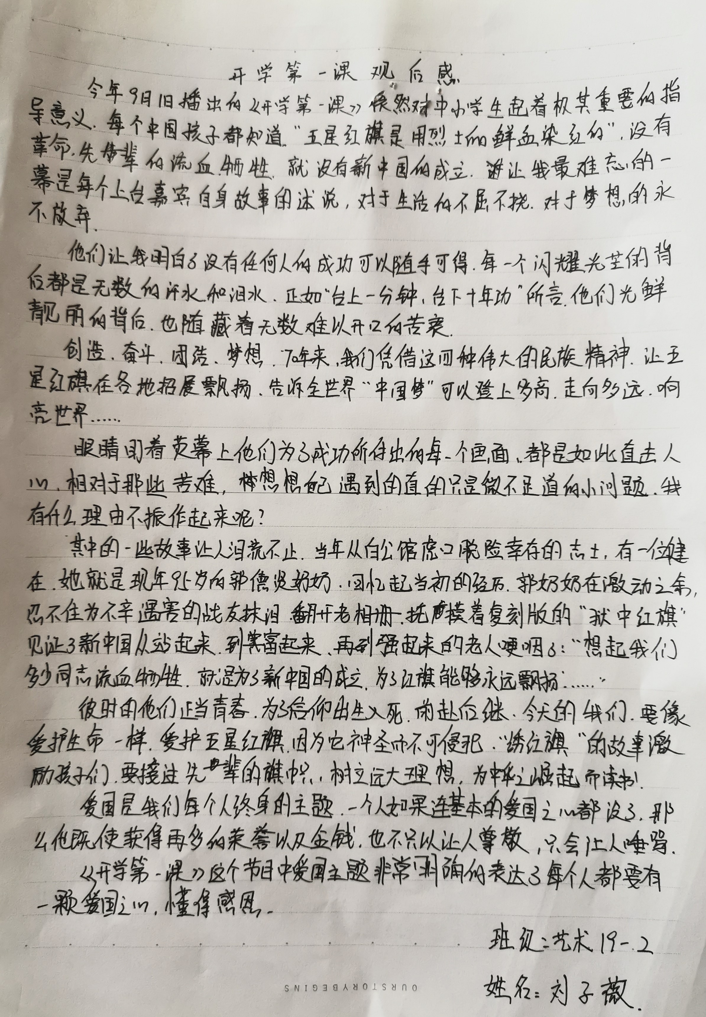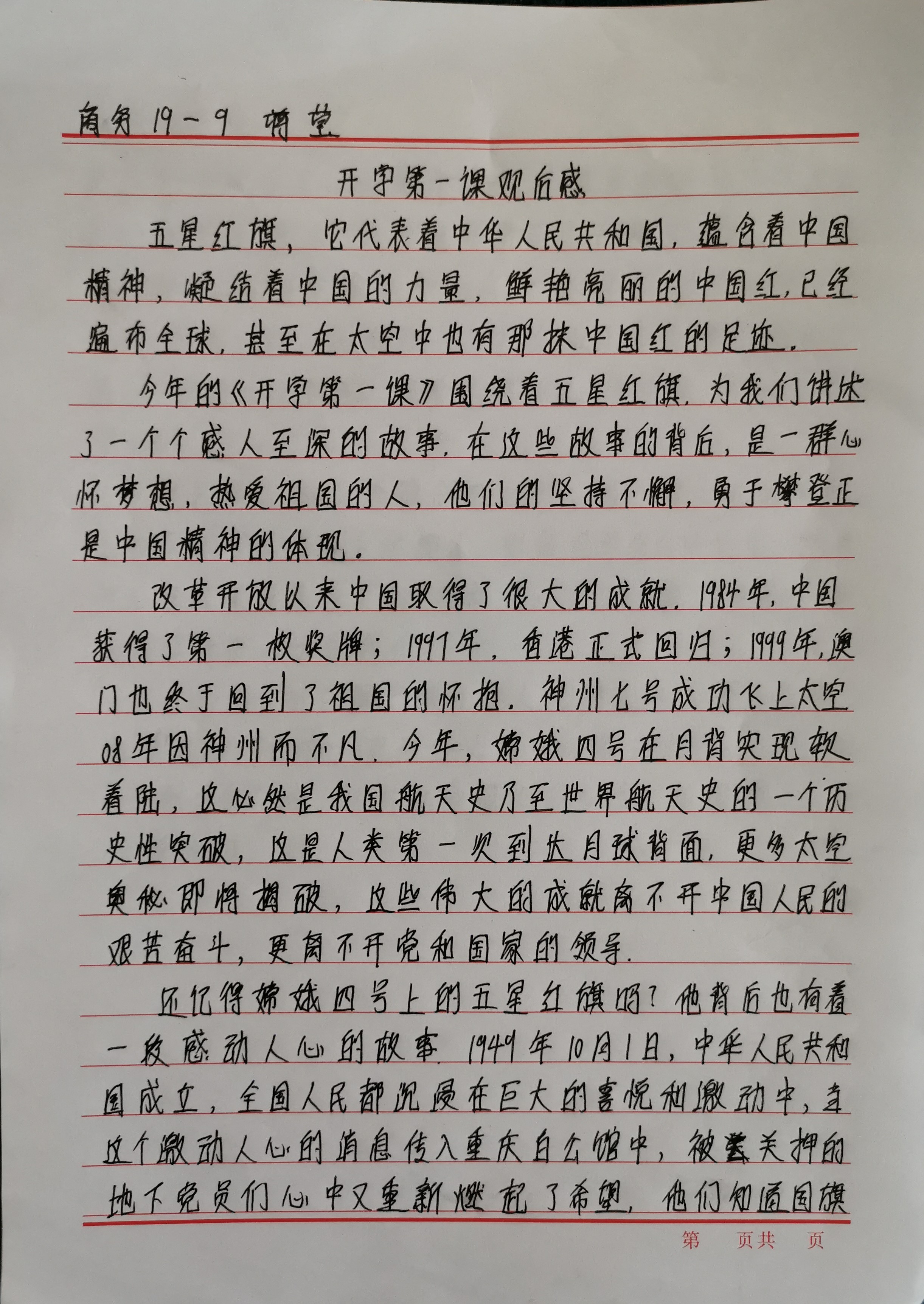 为隆重庆祝中华人民共和国成立70周年,高举中国特色社会主义伟大旗帜,以构建和谐向上的校园文化为主线,激励和引导广大青少年大力弘扬以爱国主义为核心的伟大民族精神,我校团委组织了《开学第一课:五星红旗:我为你自豪》观后感征文评比活动,现将评比结果通知如下: