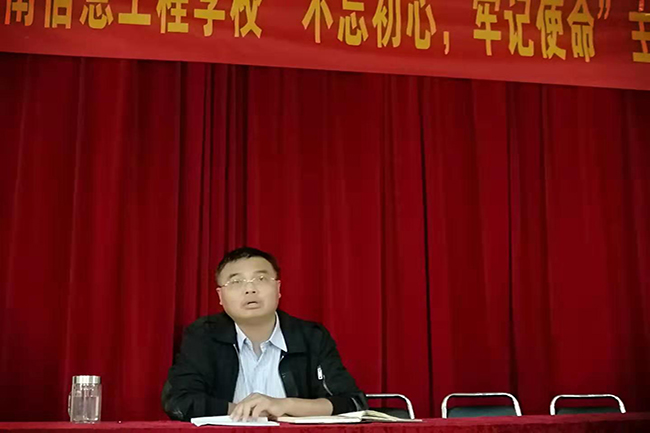 2019年9月24日下午14:30,河南信息工程学校第四支部组织全体党员在学校八角楼道德讲堂开展了“不忘初心、牢记使命”主题党日活动。主题党日活动共有二项议程:一是由党支部书记冀红海同志带领大家共同阅读学习习近平同志在“不忘初心、牢记使命”主题教育工作上的讲话精神;二是由支委成员就学习所得进行讨论发言。