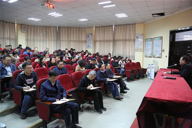 10月22日下午,学校校长聂子明以“弘扬焦裕禄精神,奋斗新时代”为题,就如何学习践行焦裕禄亲民爱民、艰苦奋斗、科学求实、迎难而上、无私奉献的精神,为全校党员干部上了一堂生动的专题党课。党课在校道德讲堂进行,校领导班子及全体党员干部参加。