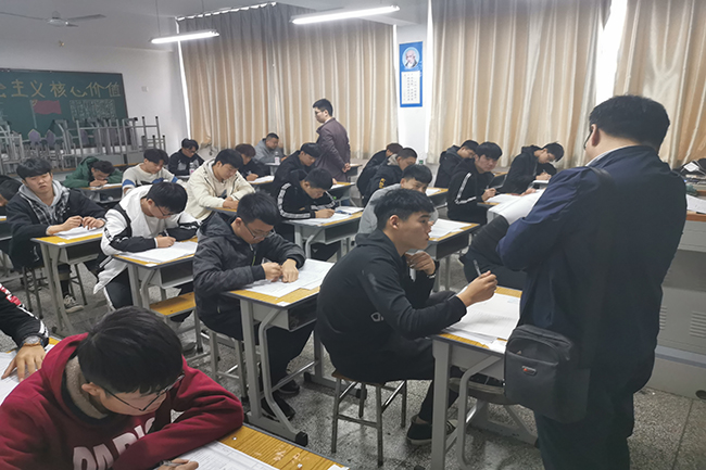 本次考试直接关系到我校2017级3+2学制的学生能否顺利升学,学校、学生和家长非常关注。为此学校领导高度重视,缜密部署,相关老师与河南职业技术学院多次沟通。我校学生处、教务处等部门通力合作,考生信息核对、考场布置等事宜分工明确、责任到人。考试过程中,夏喜利主席、聂子明校长等领导亲临考场查看考试情况,督促考务工作,要求所有考务人员必须以学生利益为重,切实为广大考生做好服务,争取让学生顺利升入高职院校。