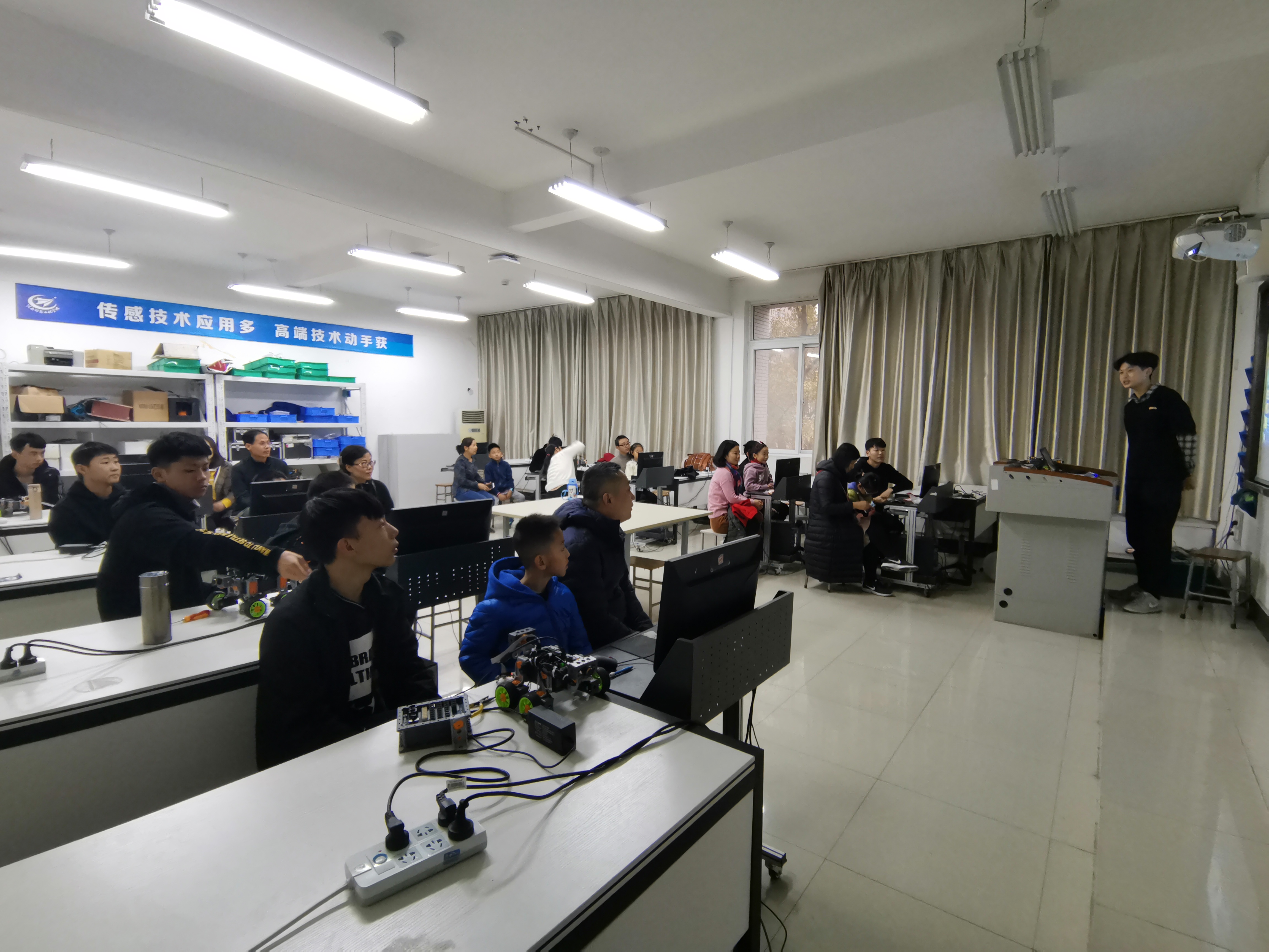 2019年11月24日 我校电子工程系职业体验活动在实训楼304举行,我校教职工家庭、电子协会17级会员参加了本次活动。本次活动的主要内容:体验创意机器人的操作与控制。首先由常钊老师向大家介绍创意机器人的操作方式。接着,以家庭为小组,在一名电子协会会员的协助下,向创意机器人下达各种动作指令。 整个体验过程中,参与小朋友的求知欲非常强,学的非常快。