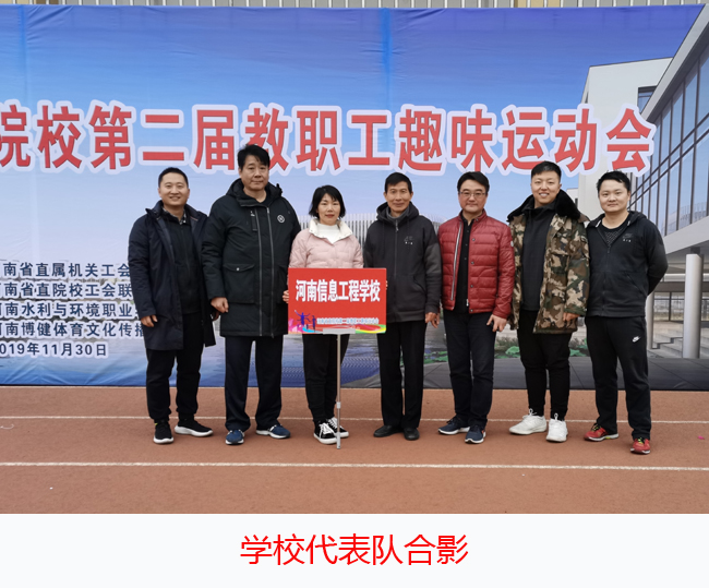 经过10多天的组队和训练,11月30日上午,我校教职工代表队一行7人,来到河南水利与环境职业学院参加了这次趣味运动会,此次运动会共设置了毛毛虫、沙包投准、滚轮胎接力、众星捧月、跳大绳5个比赛项目,共有22支学校代表队参加。经过激烈的角逐,学校获得了总比分第8名的好成绩。通过参加此次运动会,进一步丰富了职工文化生活,引导职工积极、健康、快乐的生活方式,在比赛活动中互相配合和交流经验,营造了齐心协作、团结互助的团队氛围,充分展示了信校人积极向上、不畏困难、顽强拼搏的精神面貌。