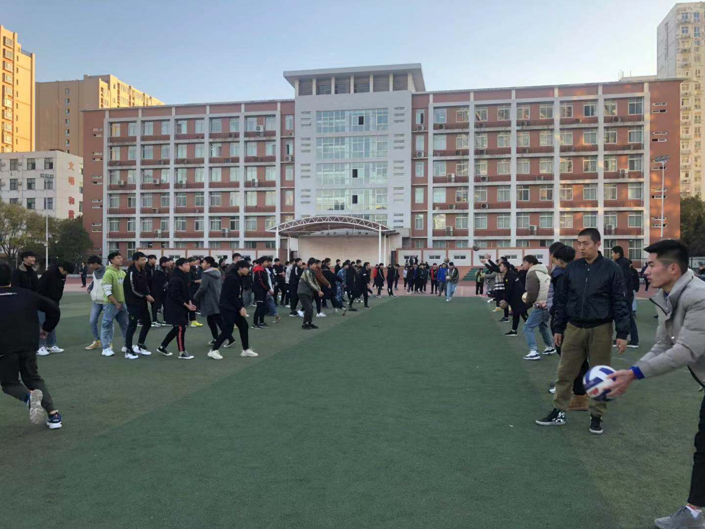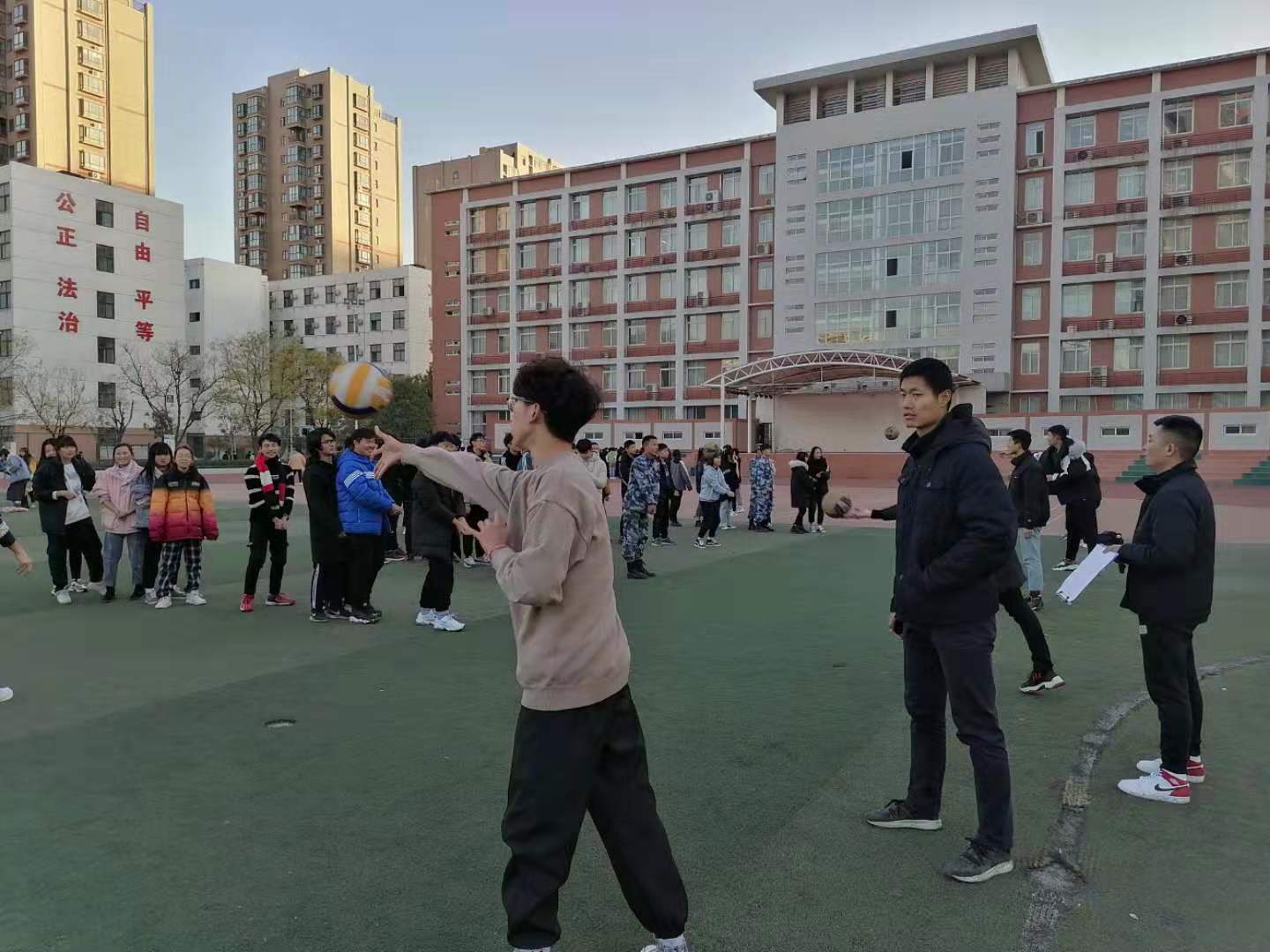 为贯彻落实国发办[2016]27号《国务院办公厅强化学校体育促进学生身心健康全面发展的意见》、河南省教育厅、河南省发改委、河南省财政厅、河南省体育局豫教体卫艺[2017]41号《强化学校体育促进学生身心健康全面发展的实施意见》,加快我校体育工作以点带面全面发展,进一步推动学校体育改革,促进学生身心健康,体魄强健,切实发挥体育在培育和践行社会主义核心价值观、推进素质教育中的综合作用,培养德智体美劳全面发展的社会主义建设者。基础部体育教研室全体教师在张毅斌老师的带领下于2019年12月3日下午冒着严寒在19级各班之间进行了第二课堂活动比赛,比赛内容为垫球接力赛,共有24个班级队伍参加了比赛。比赛中同学们热情高涨,你追我赶,比赛气氛紧张而热烈,把在课堂上所学到的技术动作运用到比赛中去。此次比赛检验了体育课课堂教学效果,推动了师生课堂教学环节积极参与,促进了学生身体素质的全面提高。