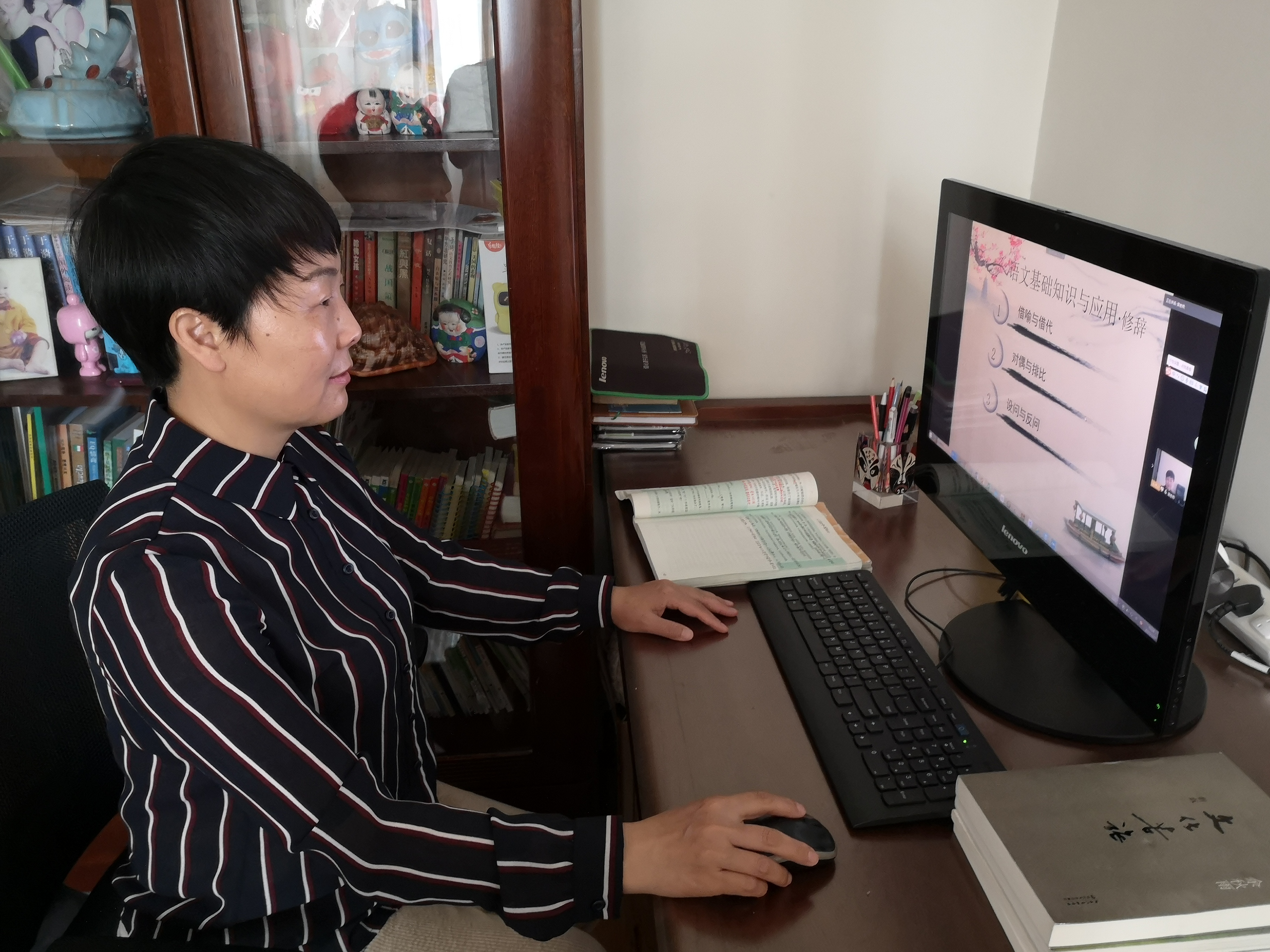 李佩玲,教育学硕士、高级讲师,从事语文教学三十年,河南省优秀教师。李老师将自己新冠肺炎疫情期间网上教学情况赋词一首:《水调歌头·直播》瘟疫一何凶,师入直播间。间里桃花无数,网络展新知。我欲解惑传道,直入腾讯深处,狂歌屏幕前。只恐杂音起,作业君不知。广阅读,多朗诵,勤练习。学习何难?疫情不废求学心。思学无以广才,慕志无以成学,闭门亦报国。少壮要努力,老大不悲伤。