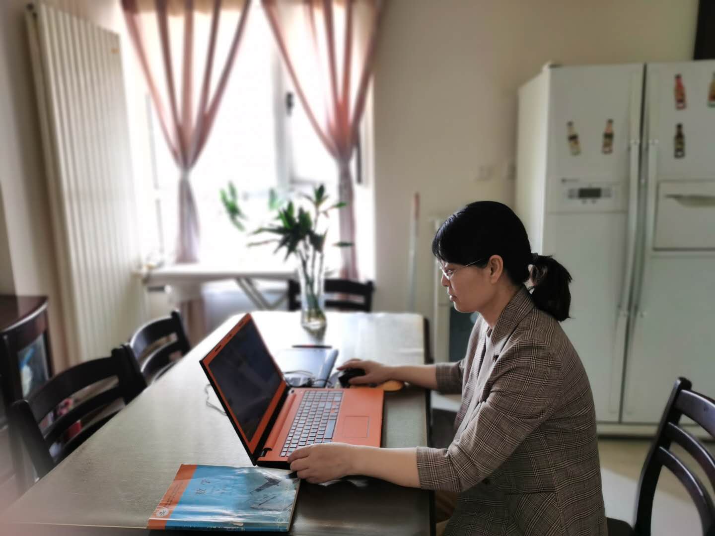 王煜霞,本科,讲师,数学教研室骨干老师。在新冠肺炎疫情期间,王老师担任商务系19级1—5班和计算机系19级1—5班共10个班的数学线上直播教学工作。课堂教学中,王老师通过课堂讨论、课堂提问、头脑风暴、随堂练习、签到活动、课后测试等形式灵活组织教学。课间,她还针对疫情这个特殊时期对同学们进行思想政治引导、心理疏导和防疫指导。课下,她积极督促同学们做好预习、复习,及时完成及提交作业,同时在学校智慧课堂平台上传教学ppt、教案、录课视频等教学资源。为了提高学习效果,王老师还向同学们推荐了自己精心挑选的中国大学慕课的相关教学内容。在师生共同努力下,同学们真正做到了“停课不停学”,疫情期间在家学有所得,达到了预期教学效果。