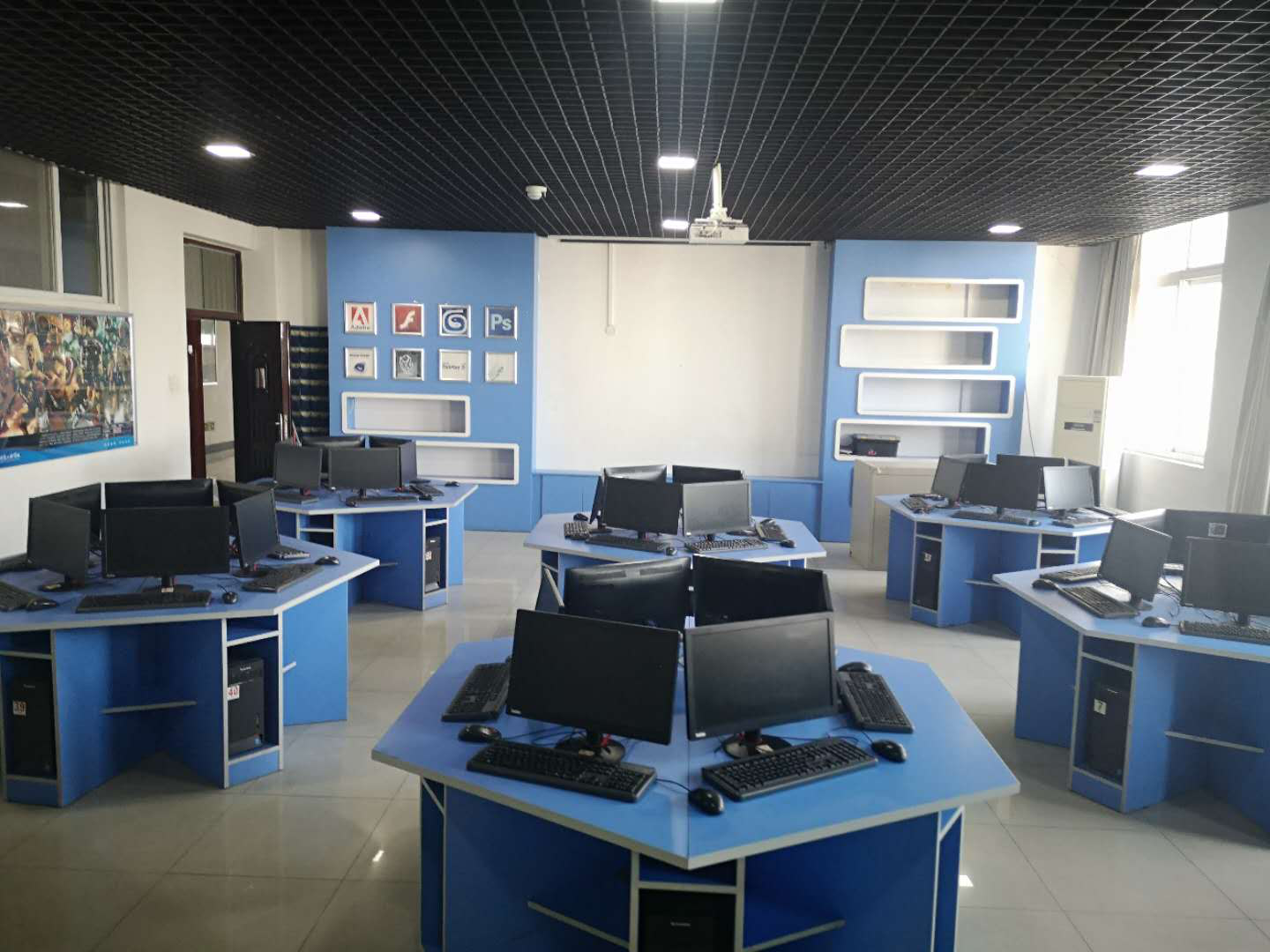 1. 平面设计实训室:本实训室主要训练学生平面广告设计制作、图形图像处理、板式设计制作、网页设计制作等操作技能,主要应用于广告设计、网页美工、PS、AI、图文排版等课程的项目教学,同时承担校内外技能鉴定与考核、校企合作项目实施、技能竞赛培训的相关任务。