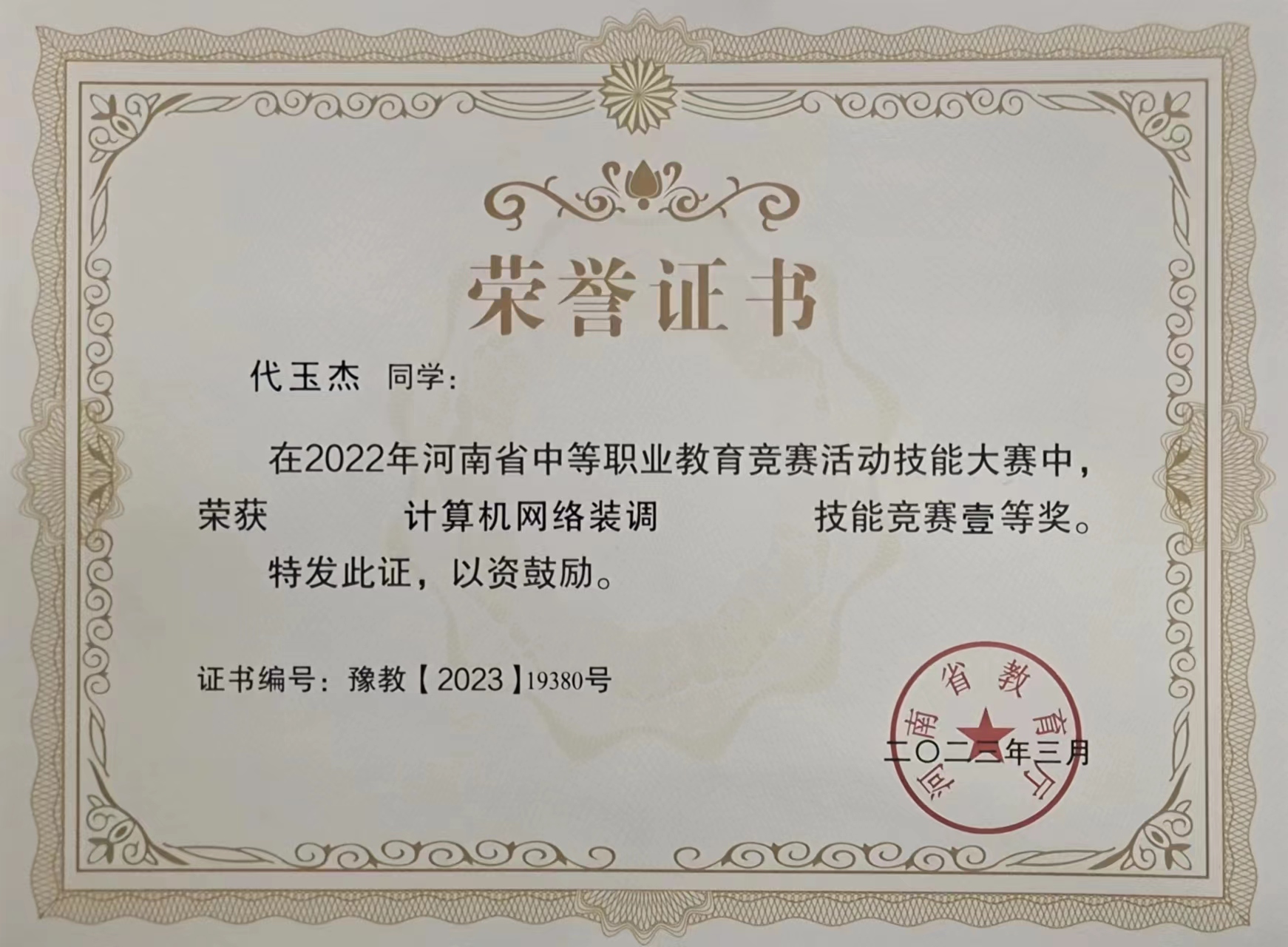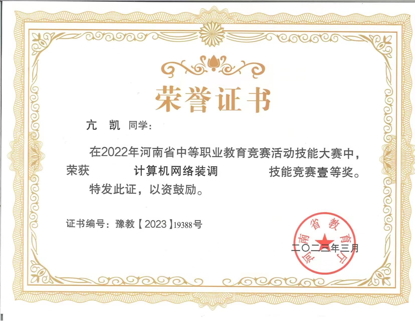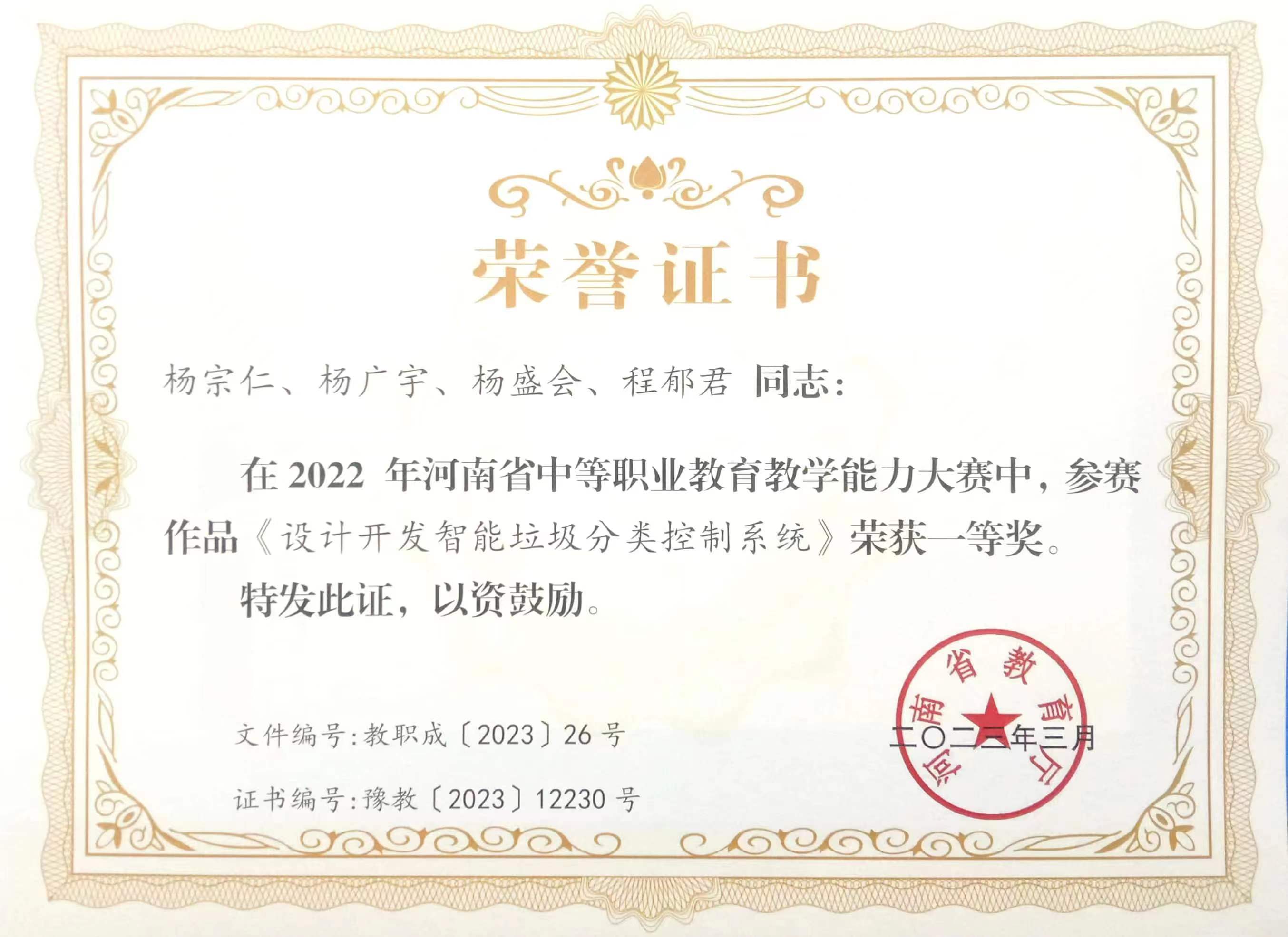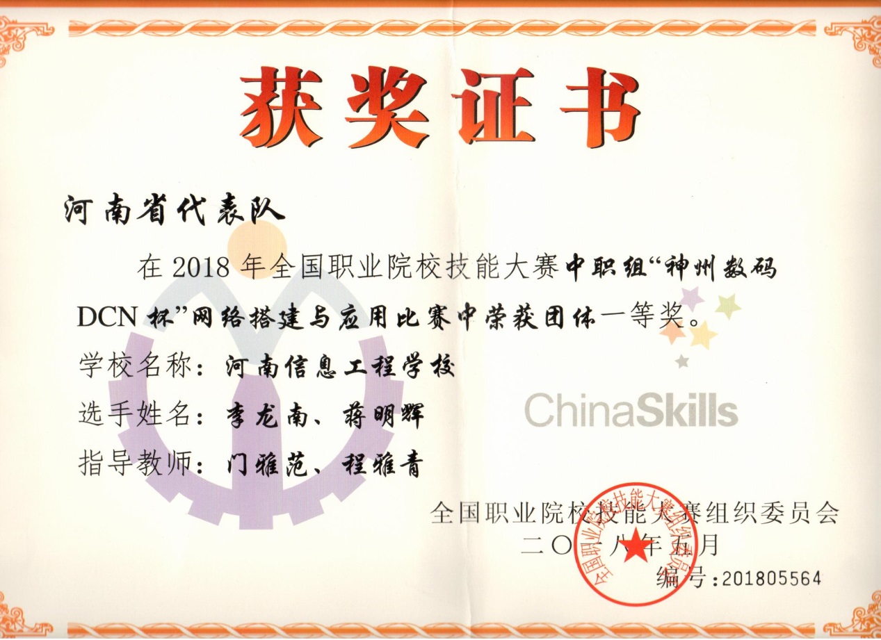 多年来,培养的学生在全国各项技能竞赛中表现突出,分别于2007、2013、2014、2015、2017、2018六次荣获全国技能竞赛一等奖,2009-2015年蝉联河南省技能竞赛”网络搭建与应用”赛项一等奖第一名,2013-2018年蝉联河南省技能竞赛“网络综合布线”一等奖,2019-2022年蝉联河南省技能竞赛“计算机网络装调”赛项一等奖。