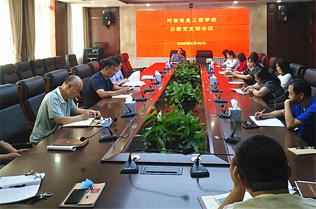 会议由后勤党支部书记季峰主持。首先,季峰同志传达了《中共河南信息工程学校委员会2020年党建工作要点》、《2020年纪检工作要点》、《意识形态工作责任制实施方案》、《河南信息工程学校工会委员会2020年工作要点》文件精神。