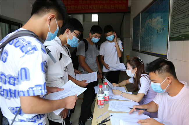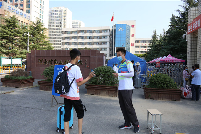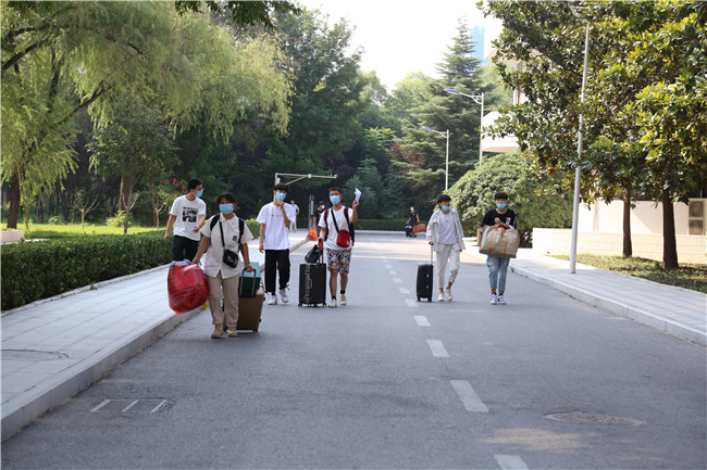 8月28日,我校19级学生返校报到。按照疫情防控工作程序,学校设置了扫健康码、行程码、测温、消毒、更换口罩、确认身份等流程,确保学生安全有序顺利返回校园。