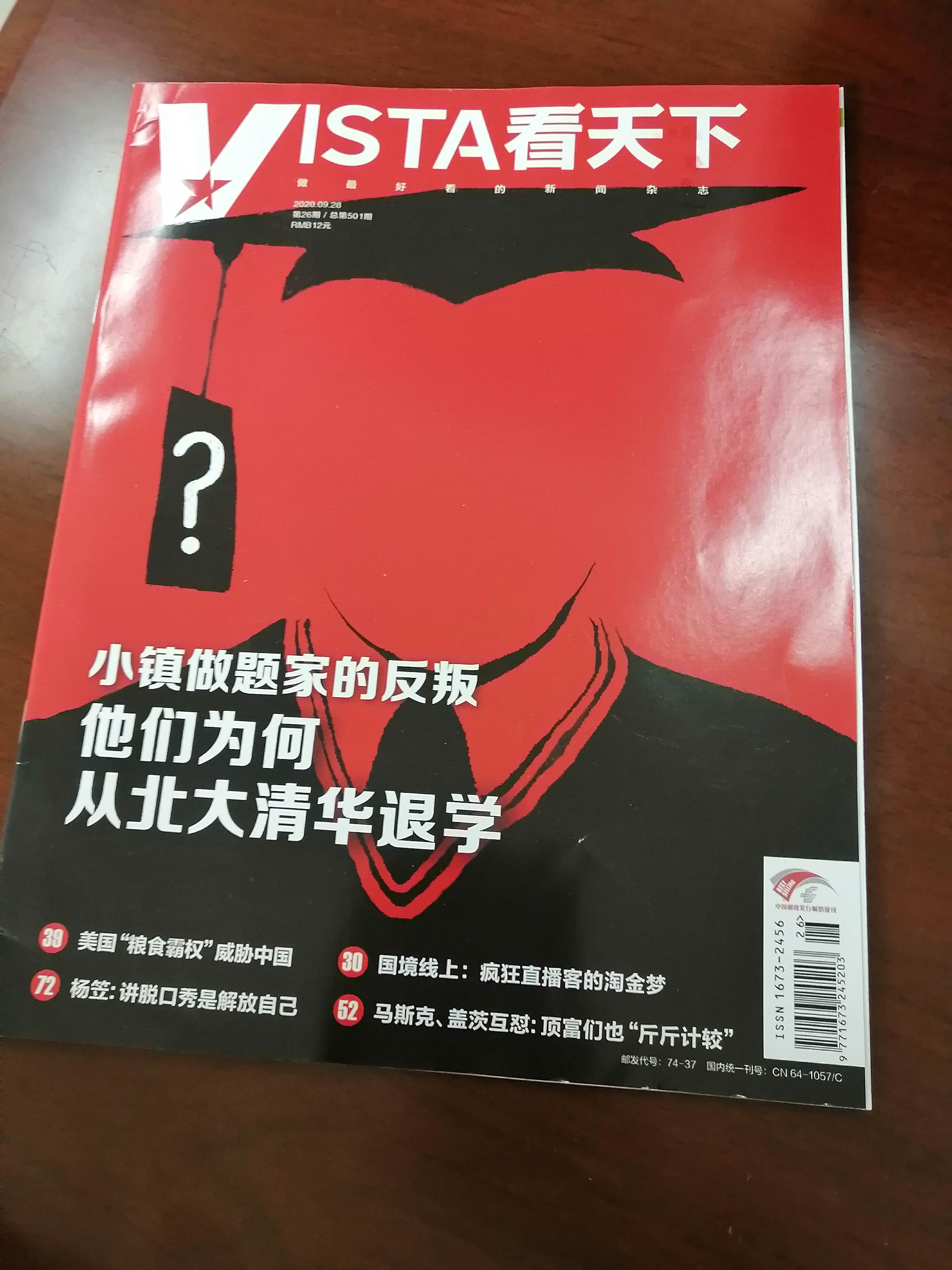 推荐理由:《Vista看天下》是一份国内综合性新闻故事类高端文摘读本,是国内目前唯一开设四个分印点的新闻类期刊杂志,也是全球华文媒体BPA认证市场发行量最大的新闻期刊(含港、澳、台地区),在主流人群中具有广泛影响力,“新闻故事中的F1”,杂志以“说新闻,讲故事”为特色,创造了中国媒体的“看天下模式”。