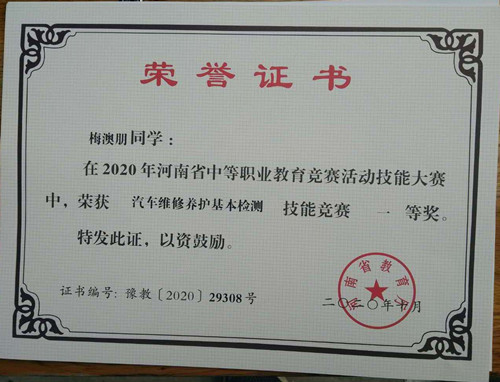2020年10月16日至24日,机电工程系参加河南省中等职业教育技能大赛电气安装与维修、机电一体化设备组装与调试、维修电工、机械零部件测量与绘图、汽车维修养护基本检测五个赛项的比赛,共有六名学生获得一等奖、八名学生获得二等奖,国赛项目电气安装与维修取得参加明年国赛资格。