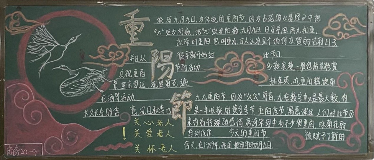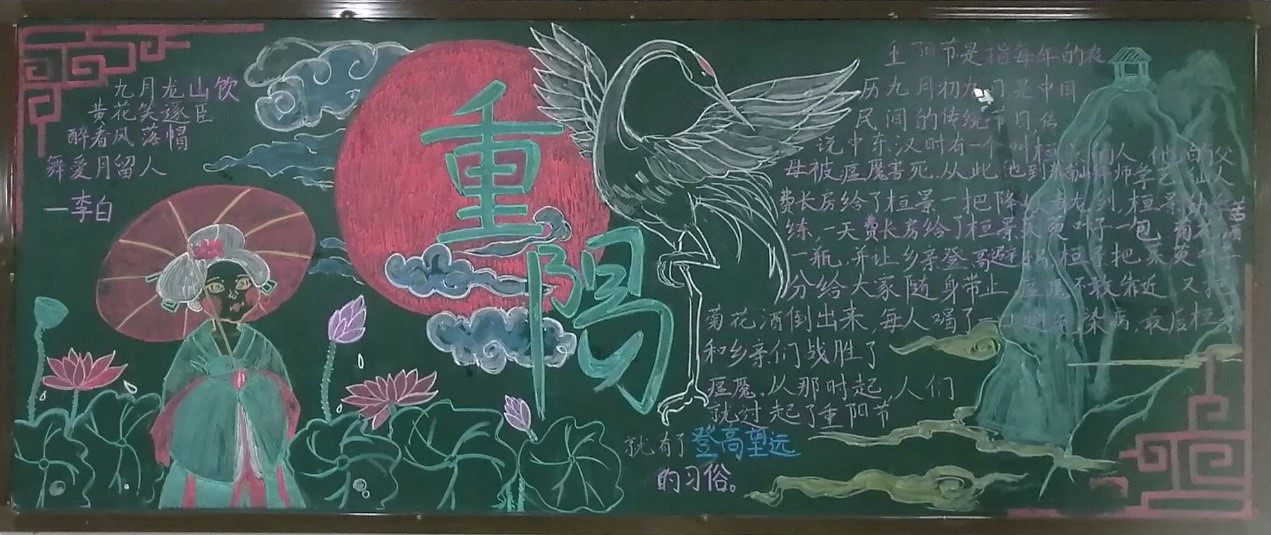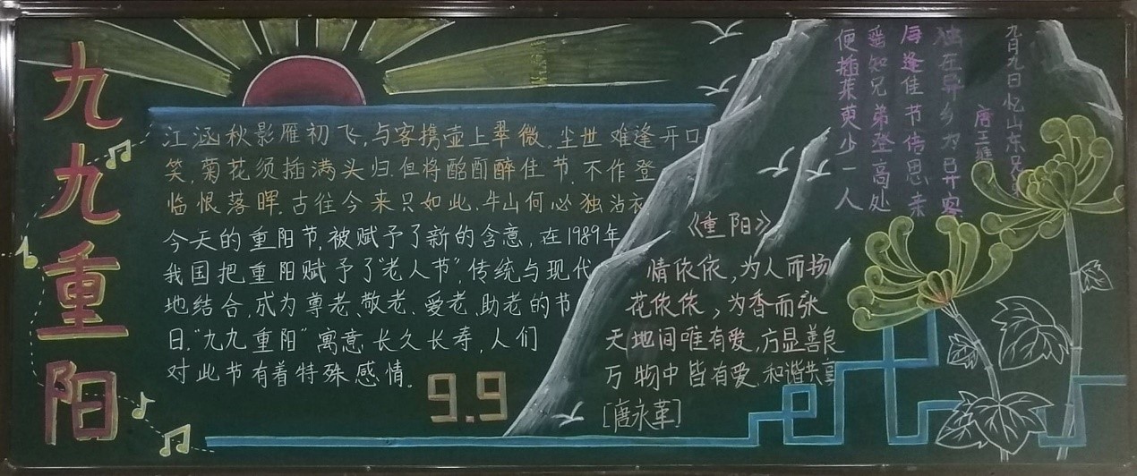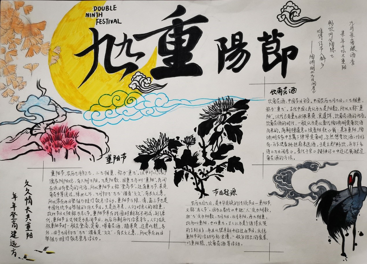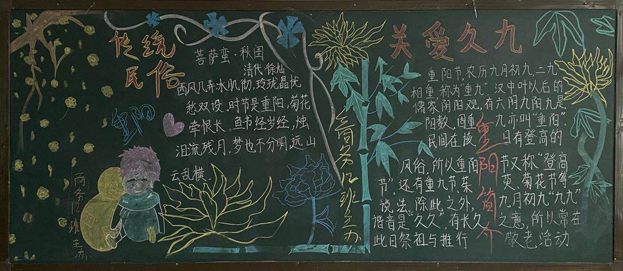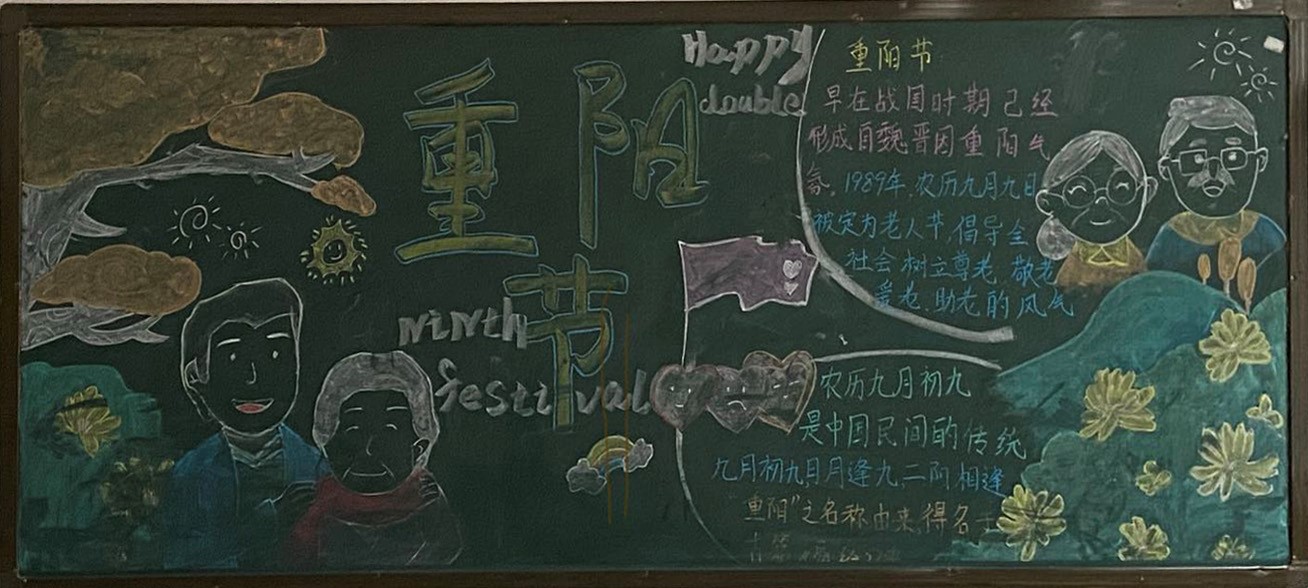 此次板报宣传主题以传统文化重阳节为背景,力主让学生自行设计绘画,充分体现学生的主体意识,从而进一步弘扬重阳节敬老、孝老、爱老的社会价值倡导。通过评比,此次板报获得前五名的班级为: