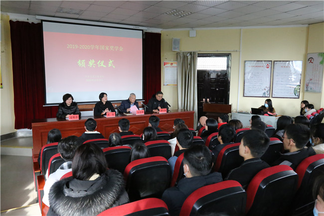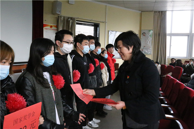 2020年12月17日下午2:30,我校在道德讲堂隆重举行2019-2020学年国家奖学金颁奖仪式。学校校长黄磊、副校长宋廷楷及教务处处史娟芬、全体班主任和各班学生代表出席了本次表彰会,会议由学生处处长冀红海主持。