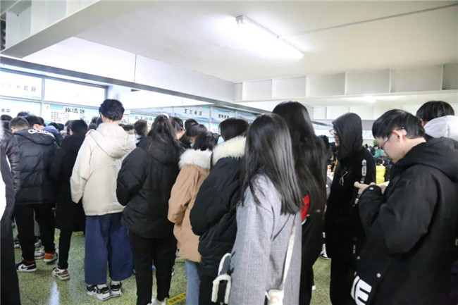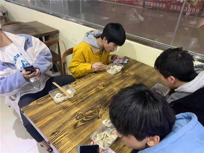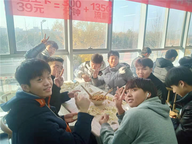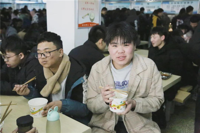 冬至当天中午,学生一下课便赶到食堂,在食堂排起了领取饺子的长队。食堂里香气四溢,热气腾腾的饺子出锅了。端上了热乎乎的饺子,学生们迫不及待地拿起筷子品尝。传统的猪肉大葱馅儿饺子,让学生吃出了家的味道。