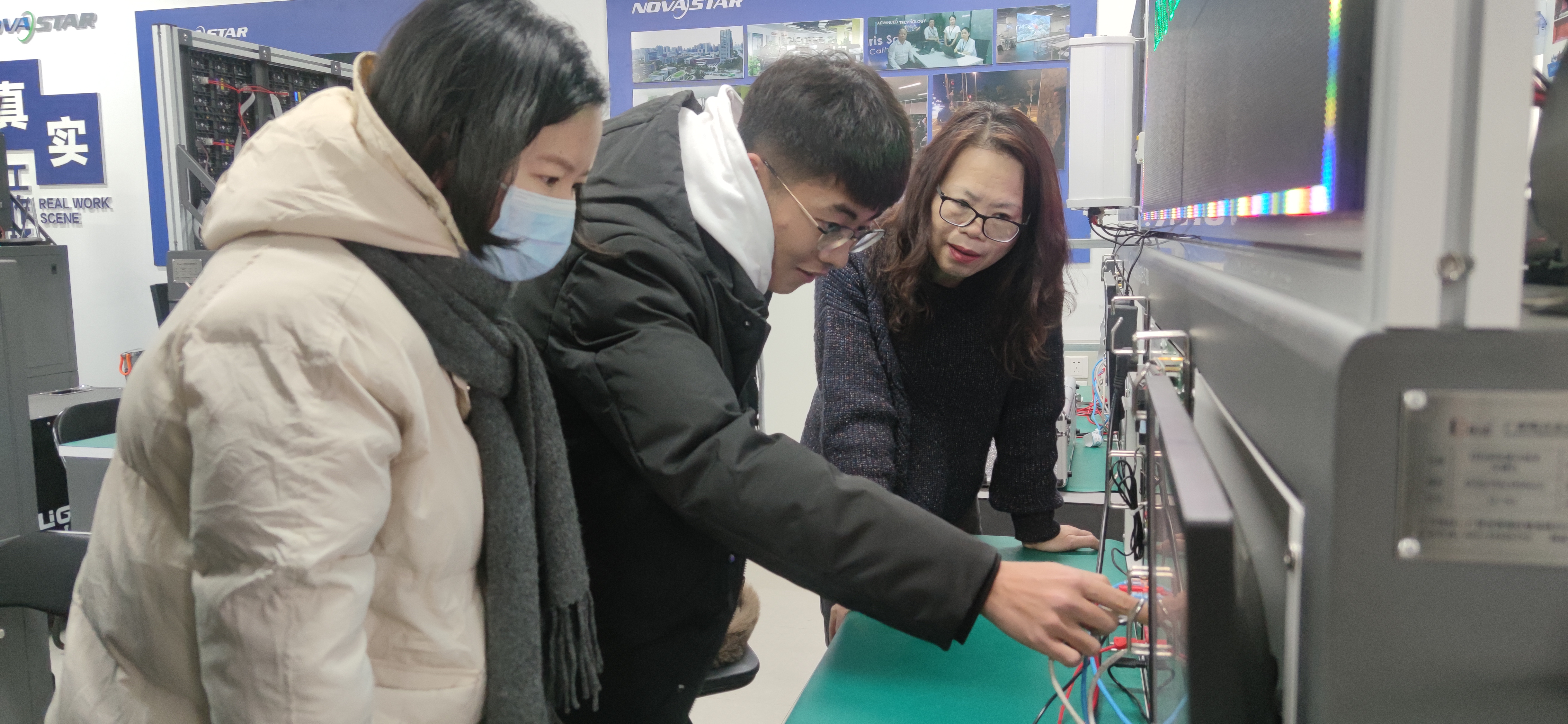 2021年1月4日-5日,光电显示设备(LED)安装与调试师资培训在我校实训楼313实训室举行,我校电子工程系全体教师参加了本次培训。本次培训特邀安徽机电技师学院彭银松老师进行光电显示行业专题讲座,向大家讲解了LED行业发展现状、趋势及行业岗位需求;LED智能显示专业人才培养方案、课程体系及产教融合经验分享。随后,大家在LED光电显示技术实训台、LED移动大屏实训平台上进行了LED单元板故障维修、整屏故障维修、常规LED显示屏安装流、视频拼接器的使用、视频切换台的使用等实训。