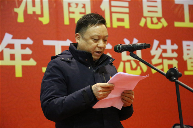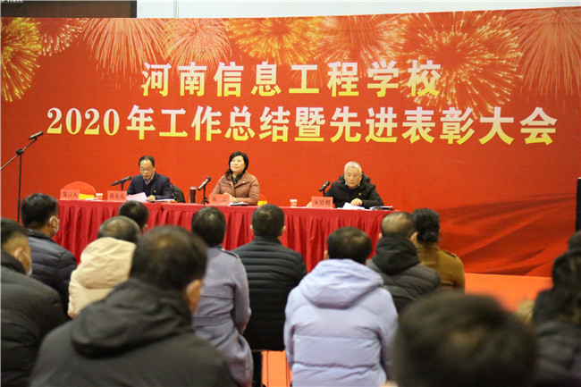 黄磊校长做了重要讲话,首先回顾了2020年学校的八项工作,一是认真调研,理清学校工作思路,提出“一个目标、二大职能、三驾马车、四条主线、十个重点”的发展思路;二是科学施策,扎实做好疫情防控工作;三是开拓创新,招生、培训、校企合作成绩斐然;四是打造专业特色,提升教学质量;五是立德树人,育人效果明显;六是加强校园治理,校园面貌大大提升;七是坚持政治引领,着力推动党建高质量发展;八是积极推动两校融合发展,打造河南职教发展新高地。明年作为国家“十四五”的开局之年,学校要重点做好专业建设、人才建设、校园建设、校园文化等方面的全面规划,同时要继续创新办学模式、开展校企合作,发挥大赛引领、提高技能水平,培养“双师型”教师、打造教师队伍,坚持立德树人、完善育人体系,解决遗留问题、优化发展环境,实施科学管理、提高办学品位,坚持党建引领、提供组织保障。