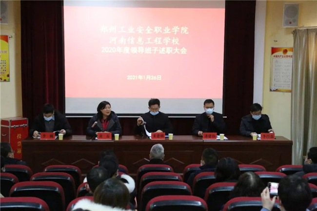 1月26日下午,yl6776永利集团2020年领导班子述职大会。省工信厅考核组、学校中层以上领导干部及职工代表参加了会议。因疫情防控需要,会议在主会场(道德讲堂)和分会场(大屏五教室)同时进行。